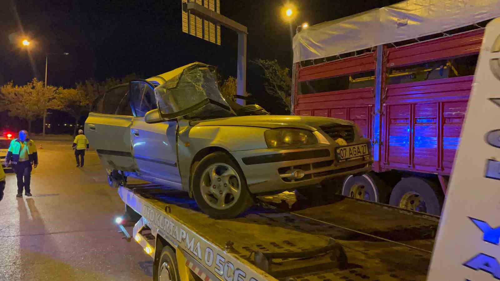 Kaza, 23.00 sularında Eskişehir-Ankara Karayolu Eskişehir Şehirlerarası Otobüs Terminali yol ayrımında meydana geldi. Edinilen bilgilere göre, Ankara istikametinde seyir halinde bulunan Asiye D. (31) idaresindeki 07 AGA 27 plakalı otomobil ile otogar yönüne dönmek isteyen Halis K. (61) idaresindeki 26 FH 228 plakalı otomobil çarpıştı. Çarpışmanın etkisiyle kendi etrafında dönen 07 AGA 27 plakalı otomobil, yön levhasına saplandı. Diğer otomobil ise savrularak park halindeki 03 SG 640 plakalı tıra arkadan çaptı. Çevredekilerin ihbarı üzerine olay yerine çok sayıda polis, sağlık ve itfaiye ekibi sevk edildi.
