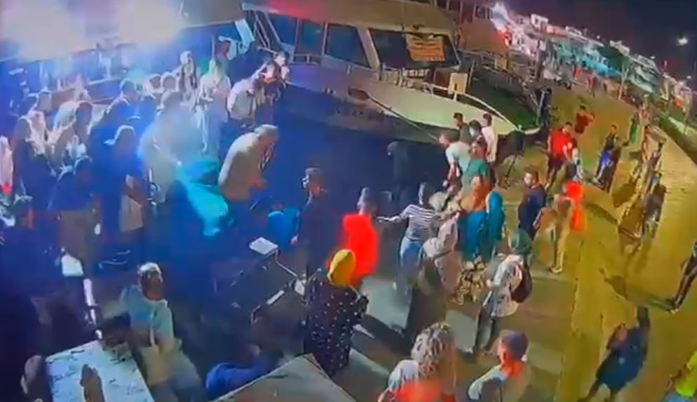 Fatih’te anne ve 2 buçuk yaşındaki çocuğu, kıyıya yanaşan tur teknesinden inmek isterken denize düştü. Anne ve çocuğu arkalarından suya atlayan baba ile teknenin kaptanı ve çevredekilerin yardımıyla kurtarılırken, o anlar kameraya yansıdı.