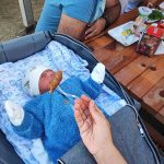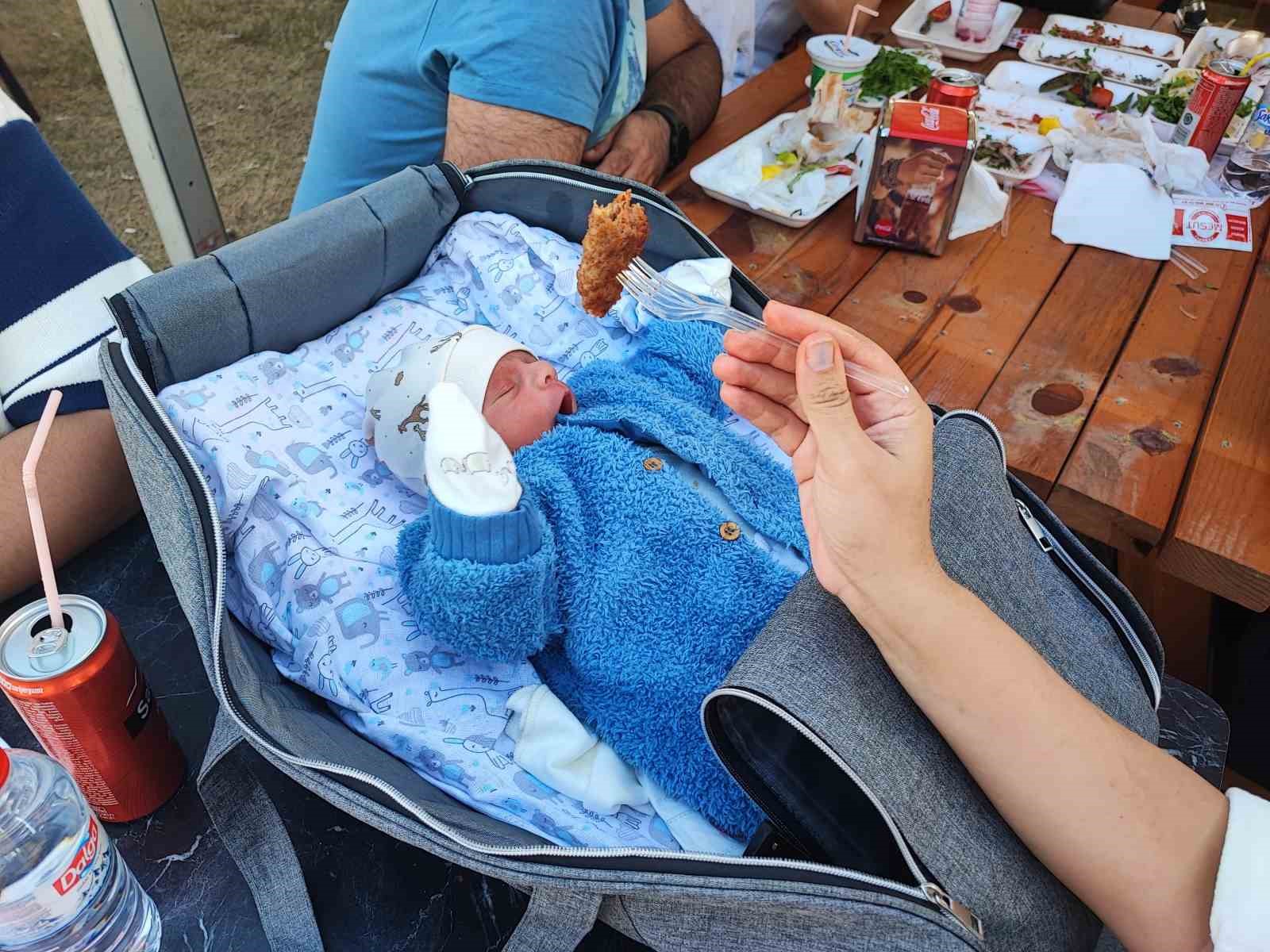 Adana’da 8. Uluslararası Lezzet Festivali’nin 15 günlük en minik ziyaretçisini annesi Adana kebabı ile avutmaya çalıştı.