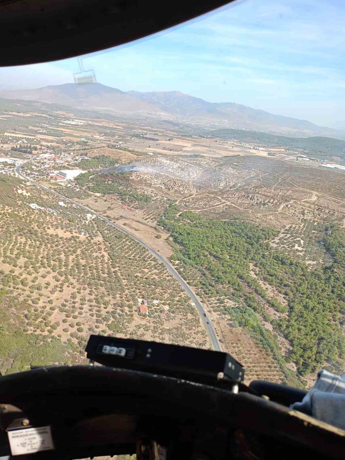 Yangın bugün saat 13.00 sıralarında başladı. Edinilen bilgiye göre, Ilıpınar Mahallesi’nde bulunan bir depoda başlayan yangın, hemen yakınındaki ormanlık alana sıçradı. Rüzgarın da etkisiyle alevler yayılırken, İzmir Orman Bölge Müdürlüğüne ait 4 uçak, 4 helikopter havadan, 25 arazöz, 5 su ikmal, 1 dozer ve 1 yer ekibi de karadan müdahale etmeye başladı. Yaklaşık 2 saat süren söndürme çalışmaları ile alevler kontrol altına alındı.