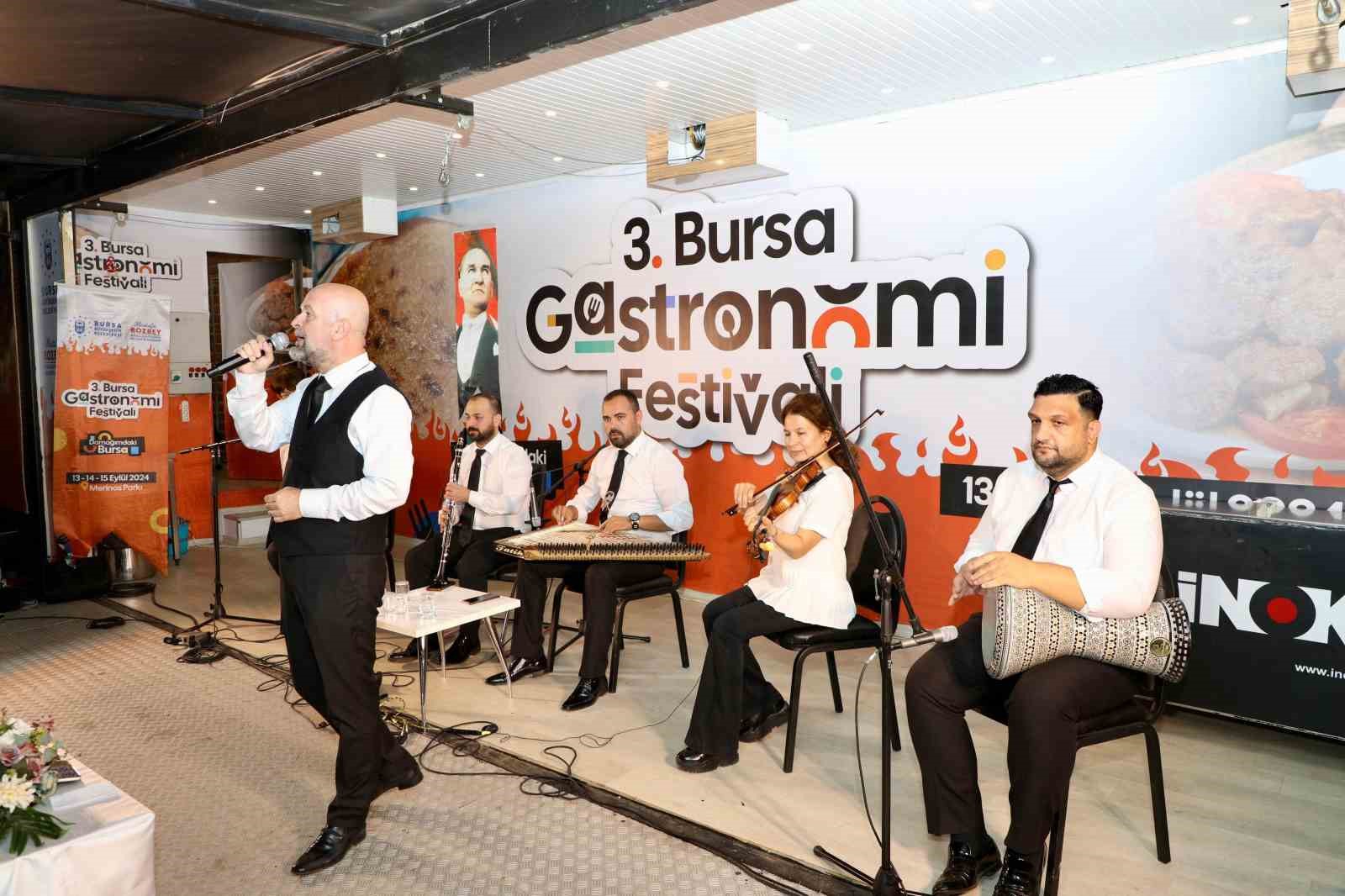Bursa Büyükşehir Belediyesi tarafından 13-14-15 Eylül tarihlerinde Merinos Parkı’nda gerçekleştirilecek olan 3. Bursa Gastronomi Festivali öncesinde, Bursa’nın lezzetlerini tanıtmak ve Bursalıları festivale davet etmek amacıyla gezen Gastronomi tırının, Mudanyalılar ile buluştu. Mütareke Meydanı’nda gerçekleştirilen etkinliğe Bursa Büyükşehir Belediyesi Genel Sekreter Yardımcısı Mehmet Yıldız, Mudanya Belediye Başkanı Deniz Dalgıç, Mudanya Belediye Başkan Yardımcısı Baran Güneş, Kültür A.Ş. Genel Müdürü Yankı İçöz ve Mudanya Belediye Meclis Üyeleri’nin yanı sıra çok sayıda Mudanyalı katıldı. Mudanya Belediye Başkanı Deniz Dalgıç, eşi Müge Dalgıç ve Bursalı şefler Barış Uysal, Recep Kantar, Kerem Kurubacak tarafından hazırlanan “Girit Usulü Etli Enginar” yemeği ile Bursa ve Mudanya’nın lezzetleri hakkında önemli bilgiler verildi.