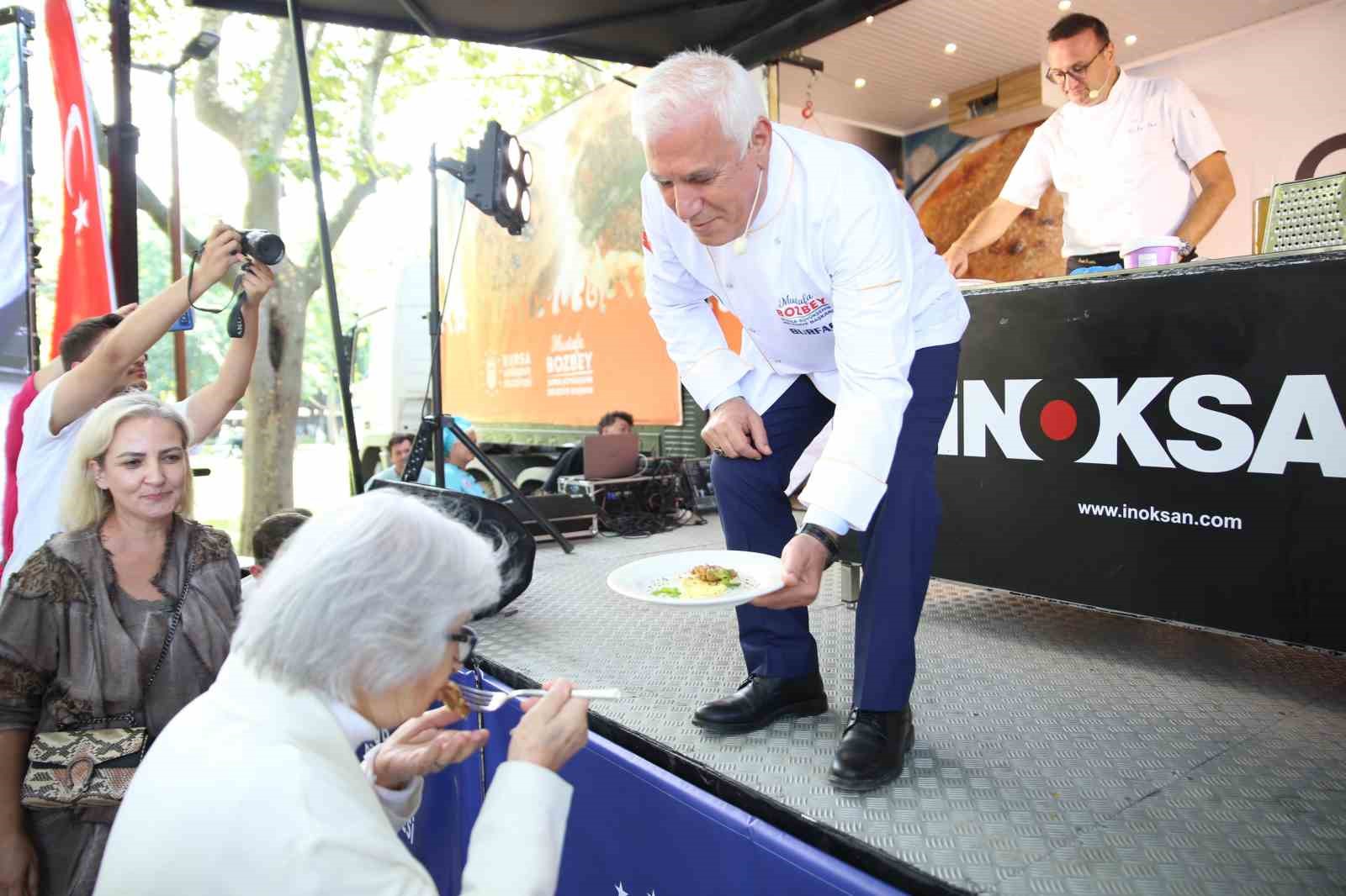 Bursa Büyükşehir Belediye Başkanı Mustafa Bozbey, eşi Seden Bozbey ile birlikte 3. Gastronomi Festivali öncesinde ilçe ilçe gezerek kentin eşsiz lezzetlerini tanıtan ‘Gastronomi Tırı’na konuk oldu. Şef Dr. Esat Özata ile birlikte kestaneli mücver yapan Başkan Bozbey, “Bursa’nın merkezinde farklı tatlar, ilçelerinde farklı tatlar var. Bu değerleri tanıtarak turizme kazandırmak istiyoruz” dedi.