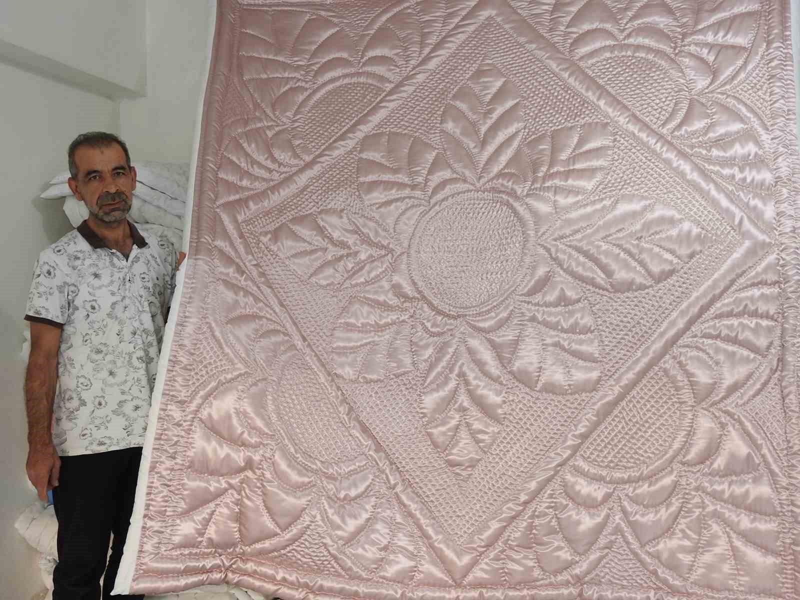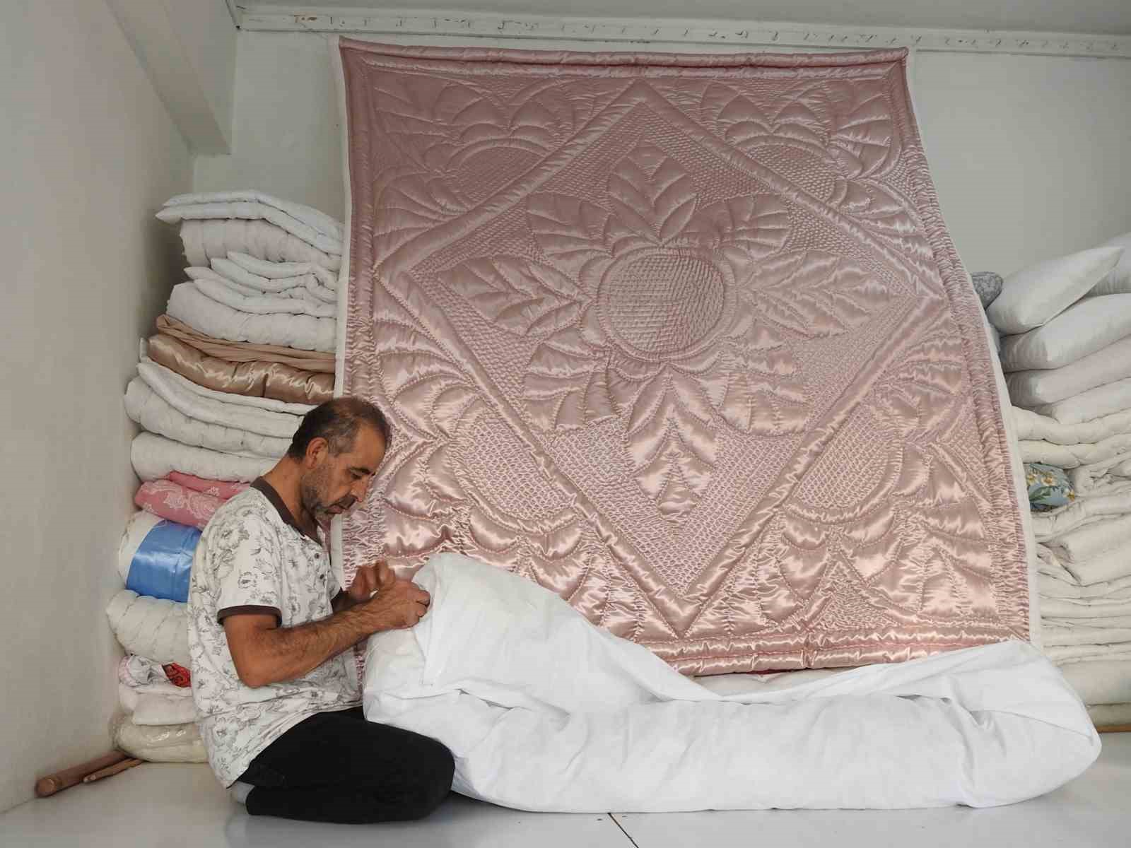 Mesleğini ayakta tutabilmek, incelik ve büyük emek isteyen el işlemesi yün yorganlarının geçmişten bugünlere taşımak için çalıştığını belirten Kadir Cellat, fabrika üretimi nedeniyle azalan talebe rağmen mesleğine devam ettiğini de sözlerine ekledi.
