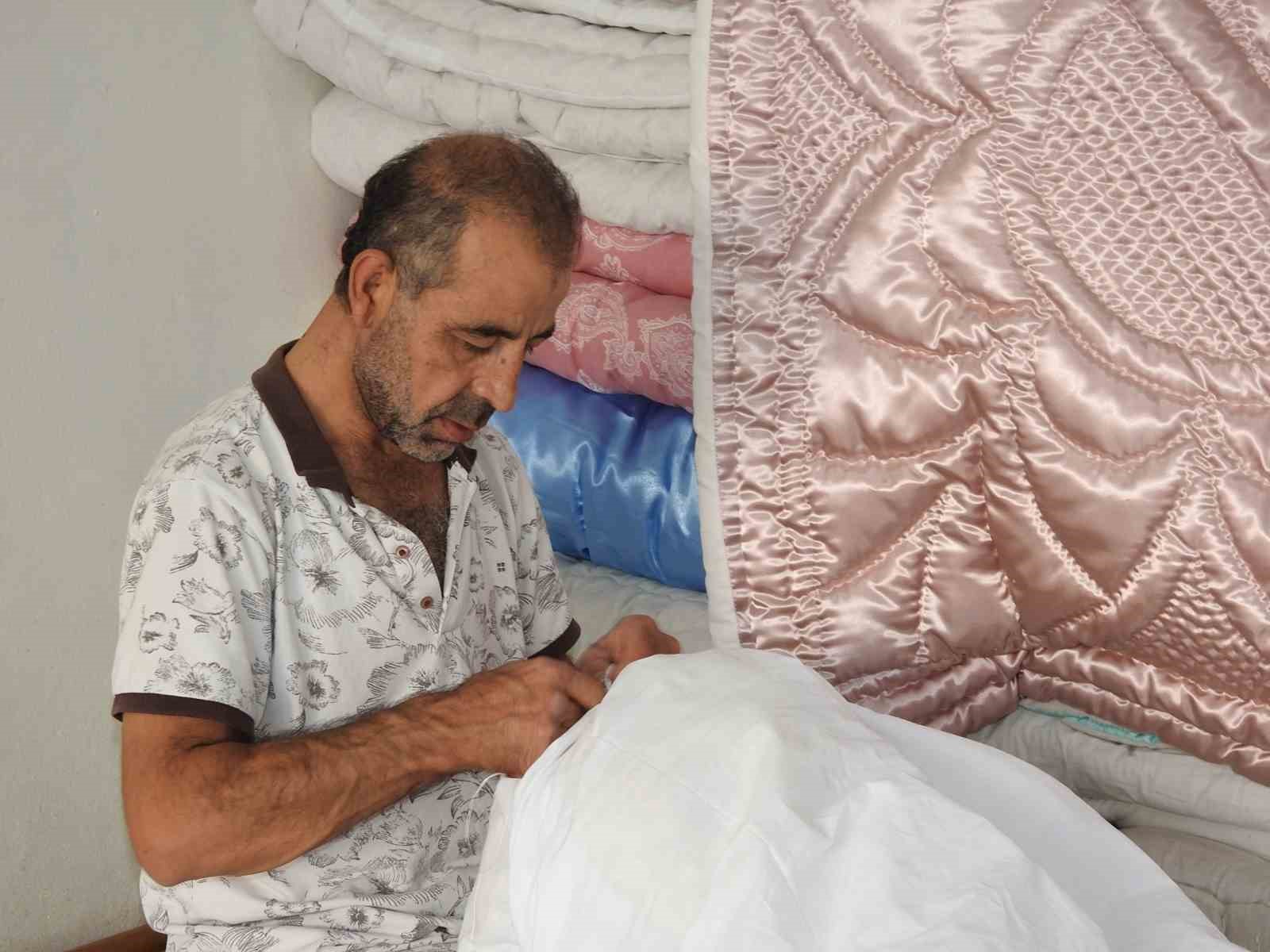 Gaziantep’te yaşayan 47 yaşındaki yorgan ustası Kadir Cellat, 8 yaşında iken çırak olarak başladığı mesleğini halen severek yapmaya devam ederek elinden iğne ipliği bırakmıyor. Küçükken ailesiyle Kilis’te yaşadığı dönemde hem okula giden hem de mesleği öğrenerek yorgan ustası olan Kadir Cellat, çıraklıktan başladığı mesleğini 26 yıl önce yerleştiği Gaziantep’te de devam ettiriyor.