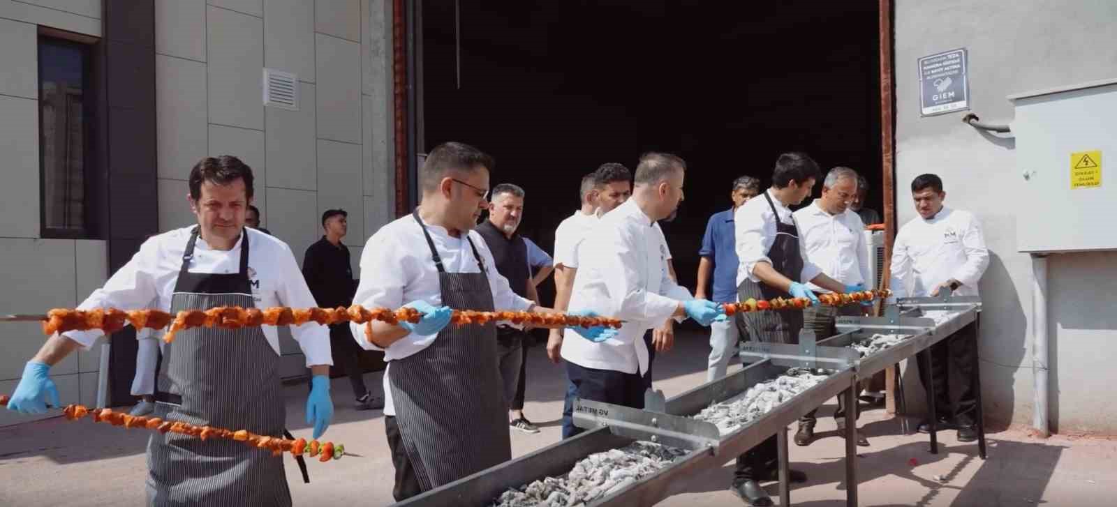 Gaziantep’te düzenlenecek “GastroAntep Kültür Yolu Festivali”nde dünya rekorunu kırmak amacıyla bir araya gelen 500 kebap ustası, 2,5 kilometre uzunluğunda kebap yapmak için kolları sıvadı.