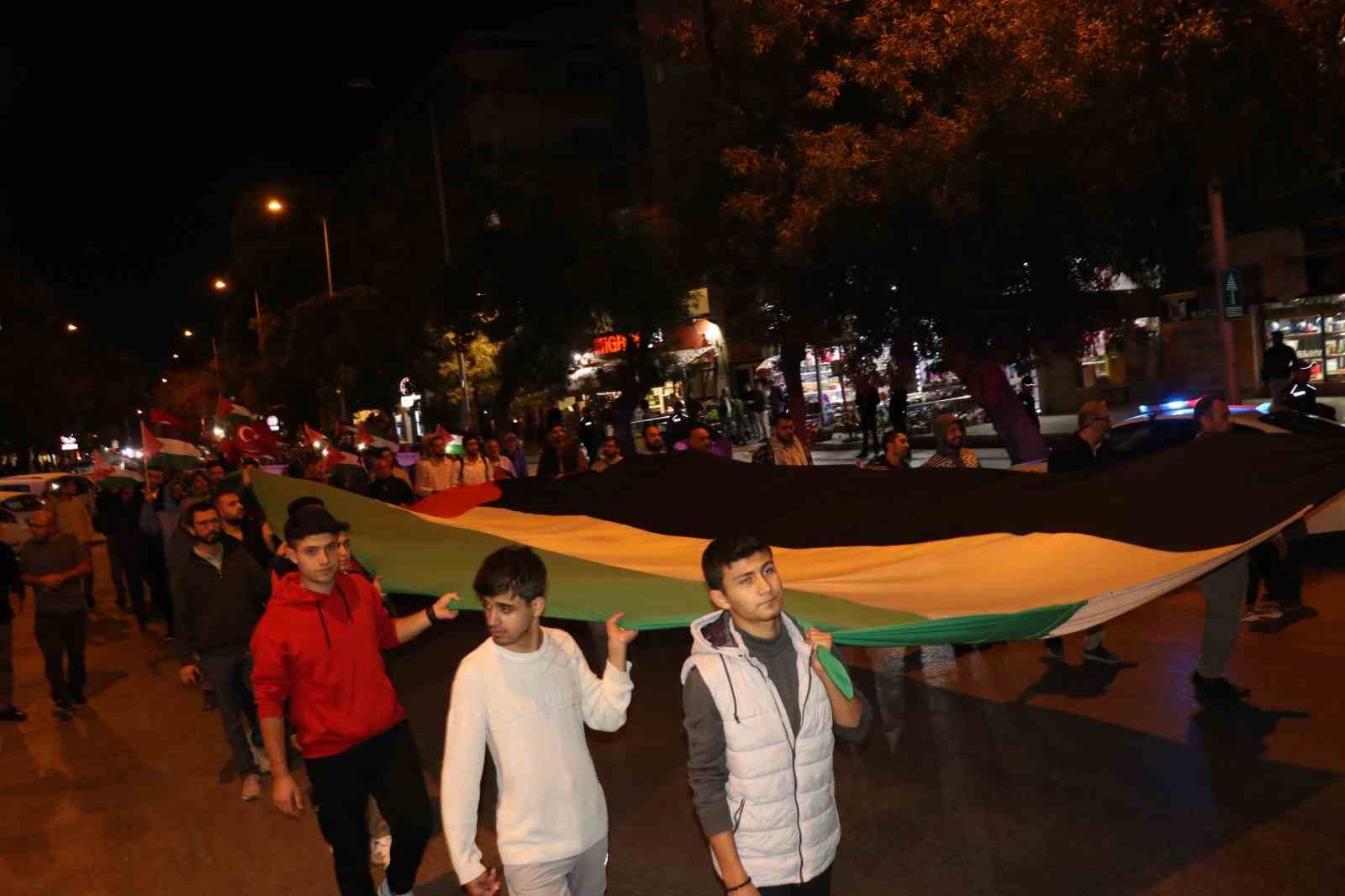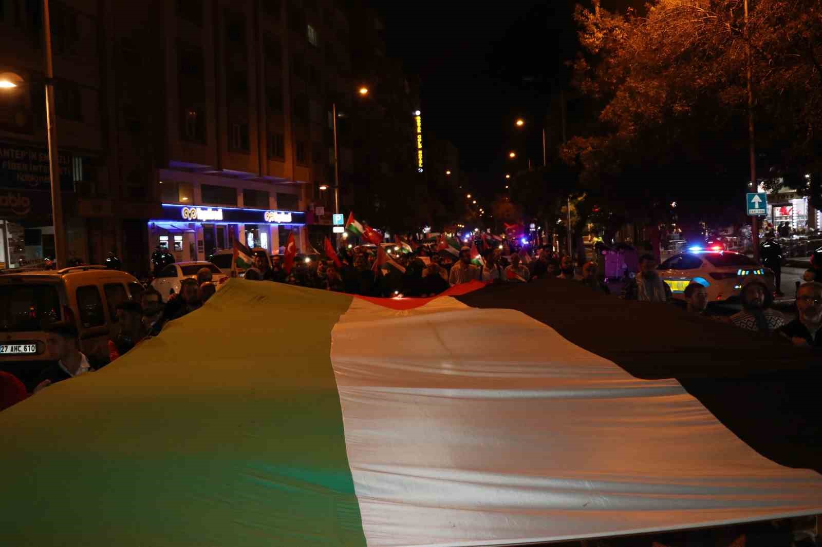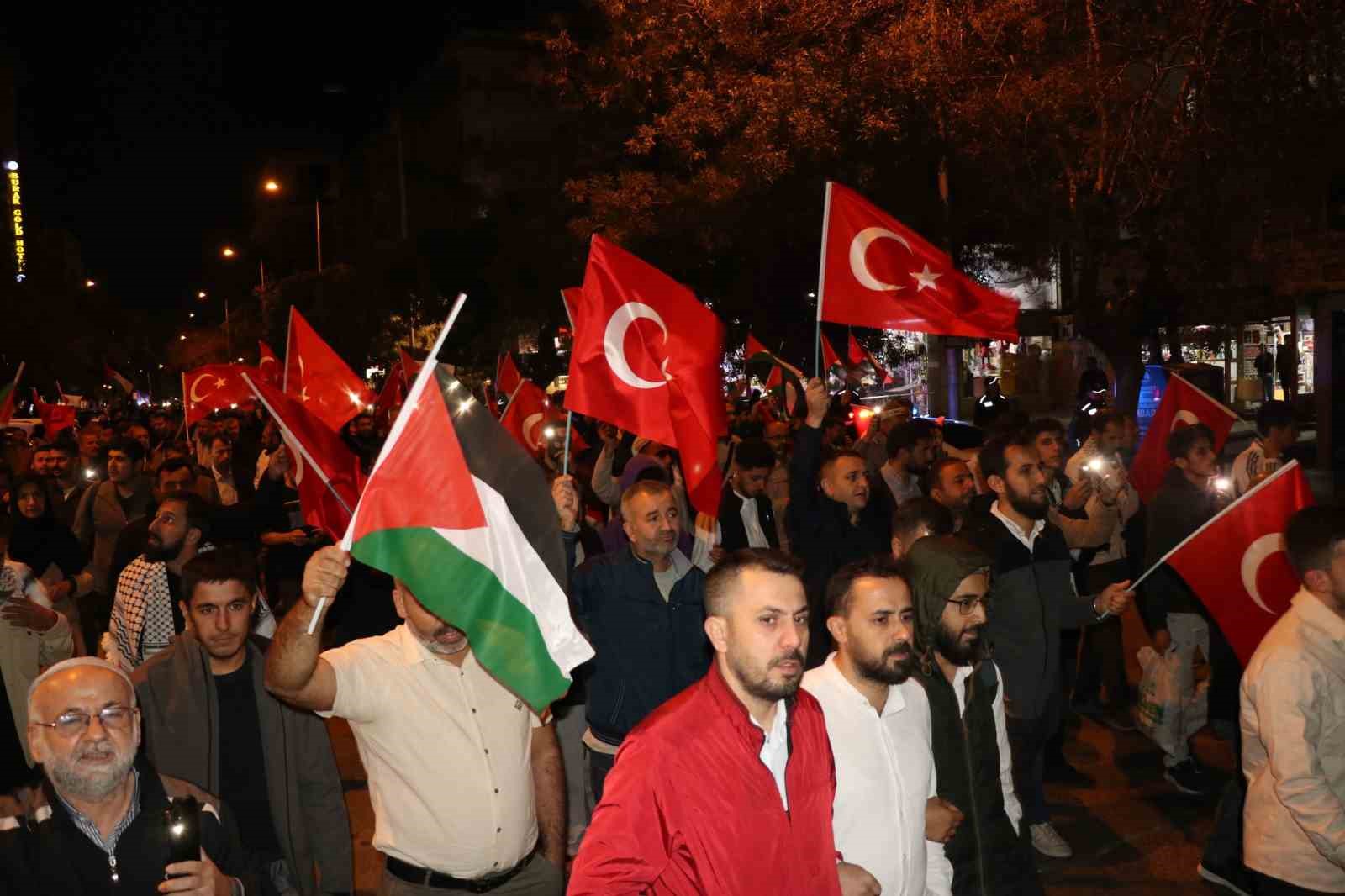 Gaziantep’te bir araya gelen STK’lar, soykırımcı İsrail’in Gazze’ye yönelik saldırılarında hayatını kaybeden Yahya Sinvar ve Filistinliler için yürüyüş düzenledi.