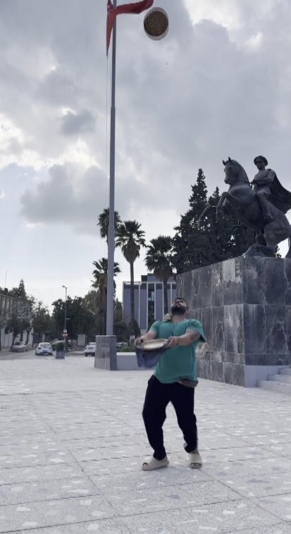 Hatay’da arkadaşlarına meydan okuyarak künefeye havada 10 takla attıran künefe ustası Nuri İmren’in o anları sosyal medyada ilgi odağı oldu.