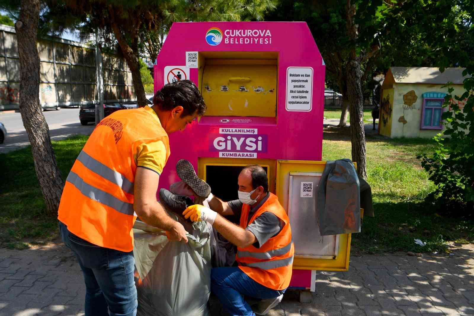 Çukurova Belediyesi tarafından şehrin birçok noktasına bırakılan giysi kumbaraları ile kullanılmayan eşyalar hem tekrar ekonomiye kazandırılıyor hem de bu sayede ihtiyaç sahiplerine destek olunuyor. Vatandaşlar kullanmadıkları kıyafetleri kumbaralara bırakırken Çukurova Belediyesi görevlileri belirli aralıklarla kumbaralardaki giysileri topluyor. Toplanma merkezinde ayrıştırılan ve kullanımı mümkün olan kıyafetler temizlenerek ütüleme yapıldıktan sonra paketlenip ihtiyaç sahibi ailelere ulaştırılıyor. Kumbaradan çıkan ve kullanılmayacak durumda olanlar ise geri dönüşüm ile tekrar ekonomiye kazandırılıyor.