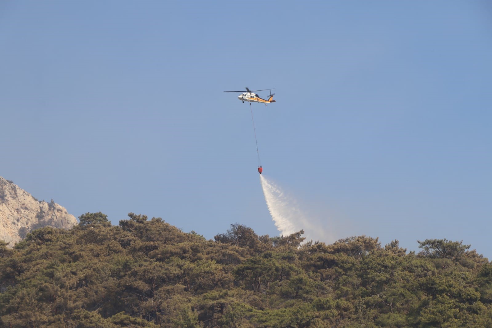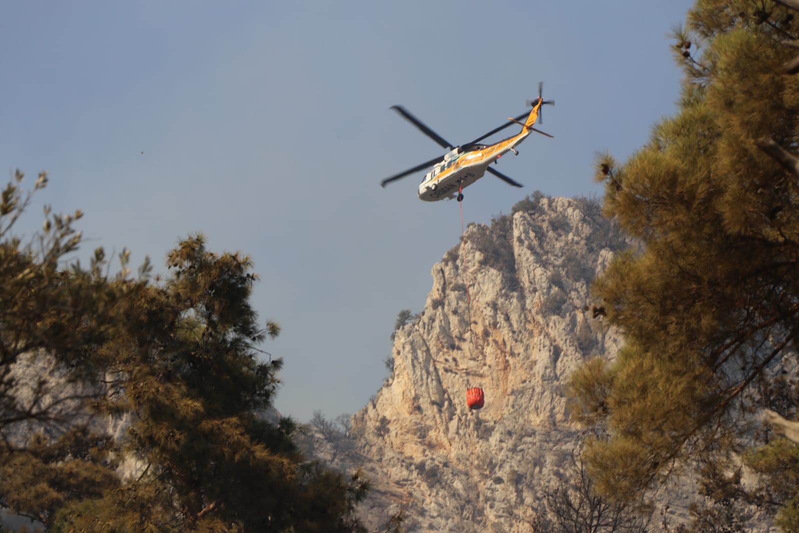 Gökova Körfezi’nde makilik ve ormanlık alanda çıkan ve geniş bir alana yayılan yangını söndürme çalışmaları sürüyor. Gün boyu devam eden çalışmalarda 45 arazöz, 14 su tankeri, 7 dozer ve 313 orman personeli karadan, 16 helikopter ve 8 uçak havadan katıldı. Jandarma ve emniyet ekiplerinin yanında Muğla Büyükşehir Belediyesi İtfaiye Daire Başkanlığı ekipleri, gönüllü vatandaşlar ve köylüler de destek verdi. Arazinin çok sarp ve engebeli olması alevlerle mücadeleyi güçleştirirken, ekiplerin yangını kontrol altına çalışmaları devam ediyor.
