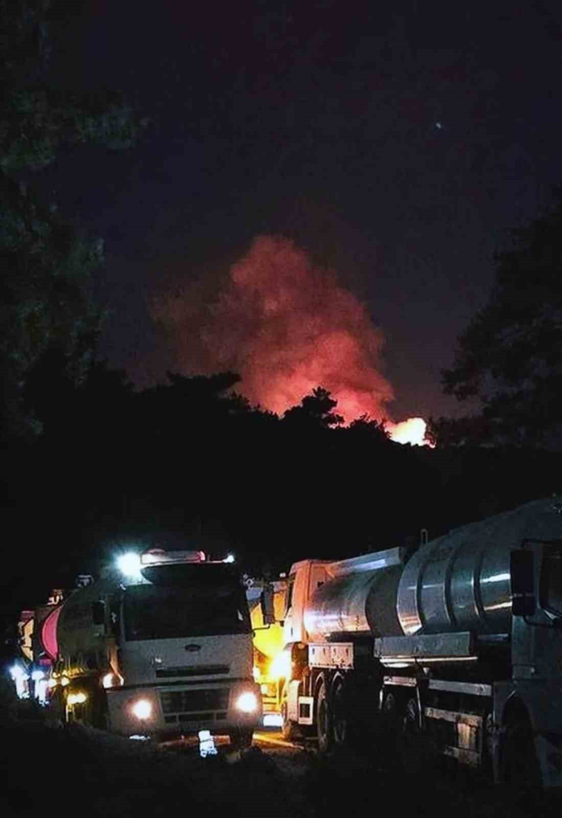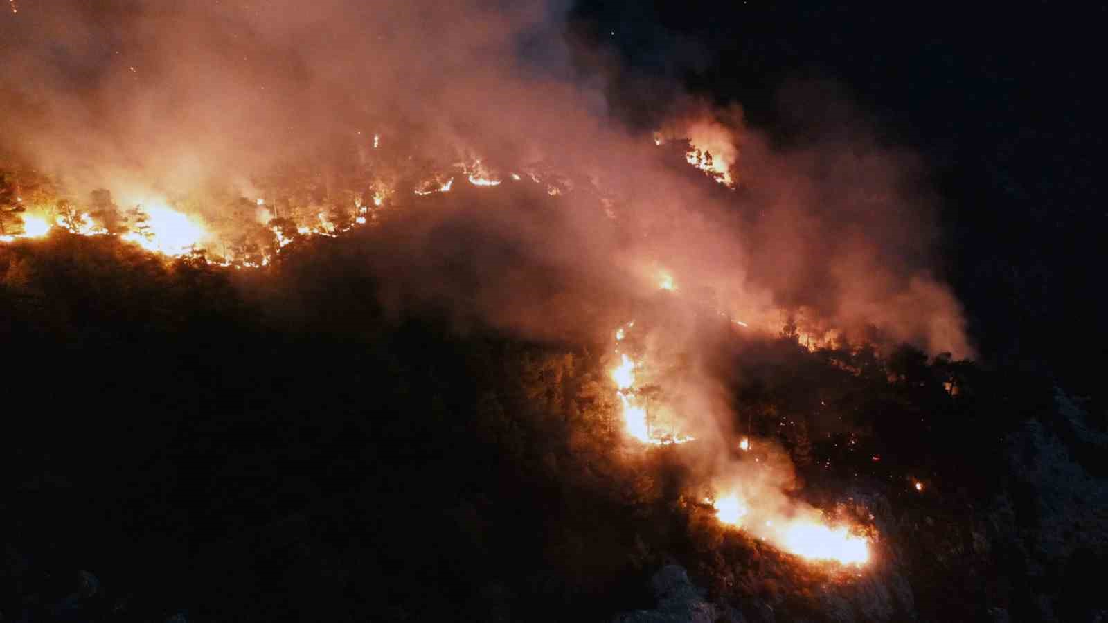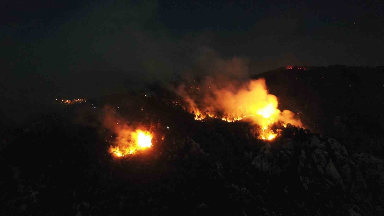 Kıran Mahallesi’nin körfeze bakan sırtlarında zaman zaman parlayan alevlere gece boyunca karadan müdahale eden ekiplerin mücadelesi dron kamerasıyla görüntülendi. Bölgede orman, Muğla Büyükşehir ve Menteşe Belediyesi ekiplerinin yanında kurumlar, gönüllüler ve köylüler tarafından alevlerin önünün kesilmesi için mücadele veriliyor. Gökova Körfezi Turnalı mevkiinde başlayan orman yangınında 17’si yazlık 29 yapı zarar görmüştü. Söndürme çalışmalarına 45 arazöz 14 su tankeri 7 dozer ve 313 orman personeli karadan, gündüz saatlerinde ise 16 helikopter ve 8 uçak havadan katılıyor. Jandarma ve emniyet ekipleri de helikopter ve TOMA’larla destek veriyor.