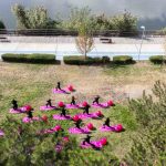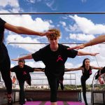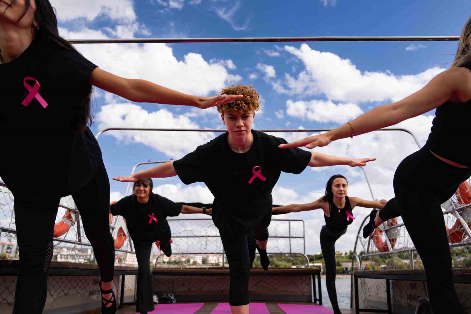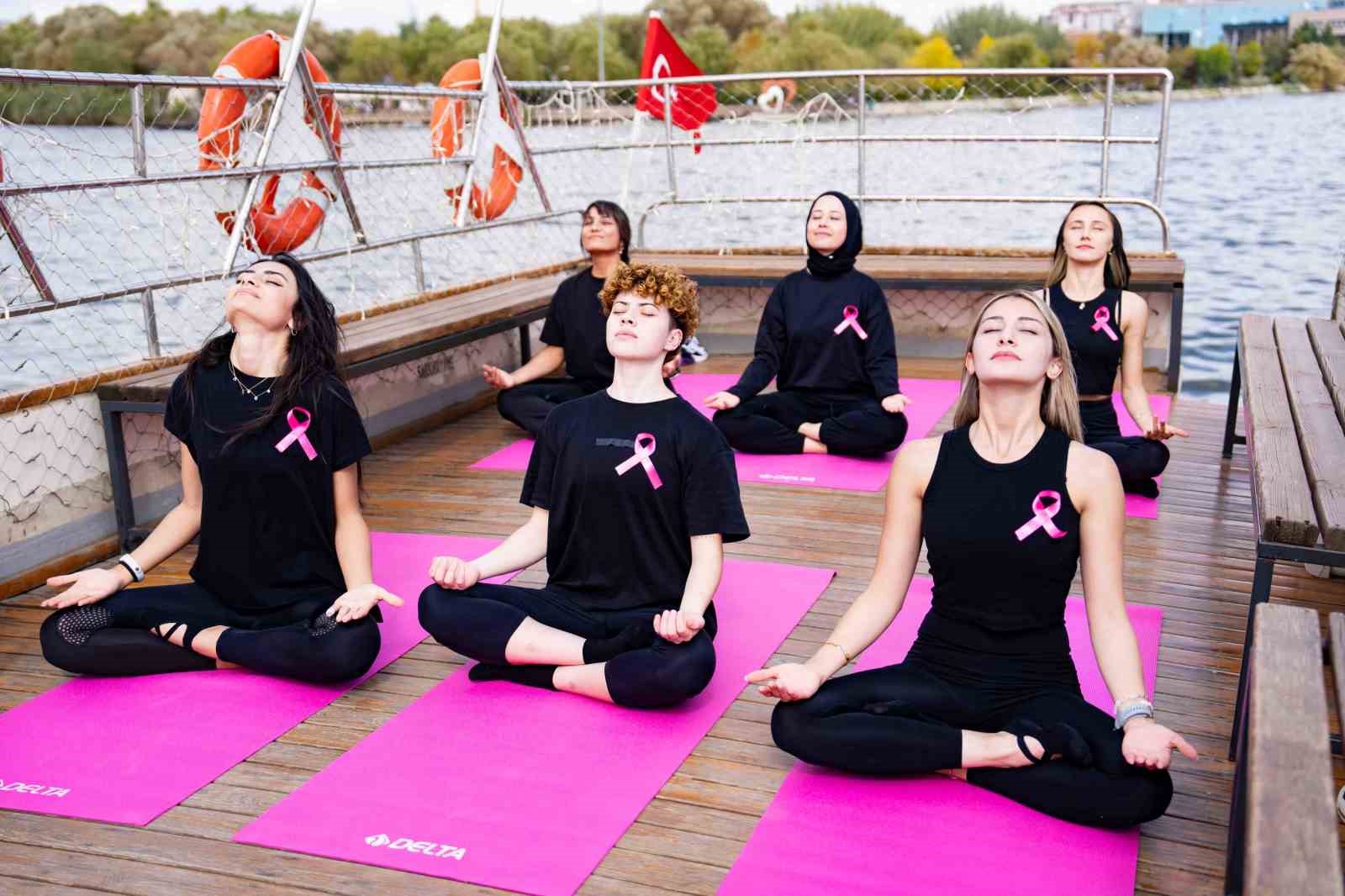 Gölbaşı Belediyesi kurslarında görev yapan kadın antrenörler, meme kanserine dikkat çekmek için Atatürk Sahil Parkı ve teknede ‘Farkındayız, birlikteyiz, güçlüyüz’ sloganıyla pilates yaptı.