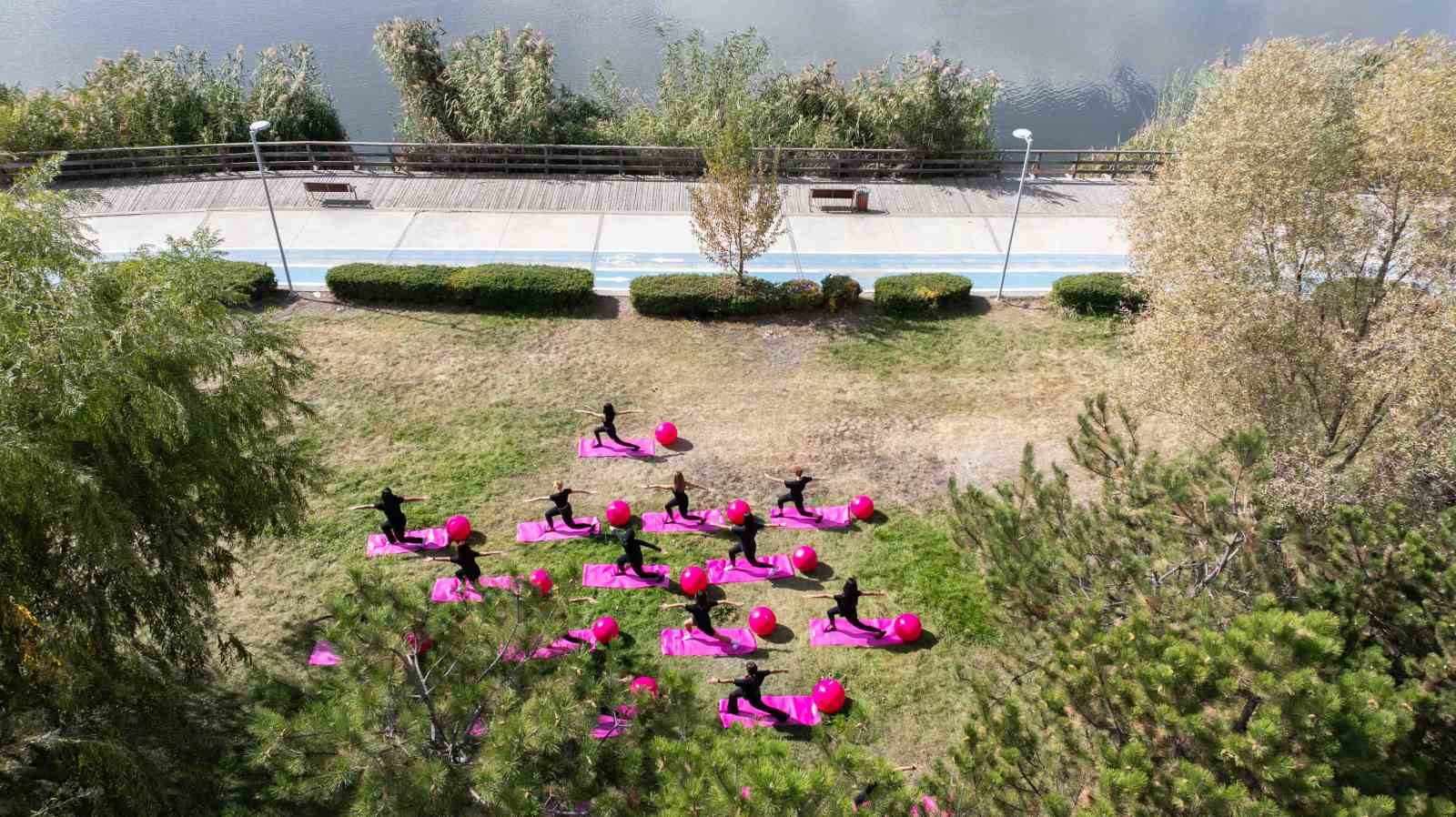 Gölbaşında Kadınlar Meme Kanseri̇ne Di̇kkat Çekmek İçi̇n Pi̇lates Yaptı