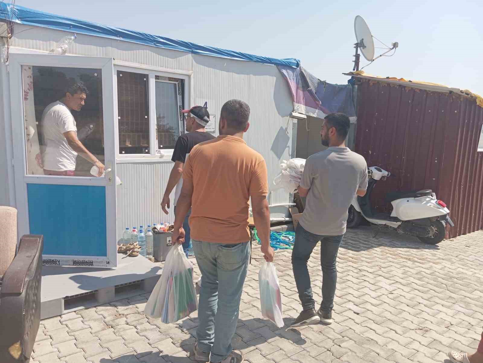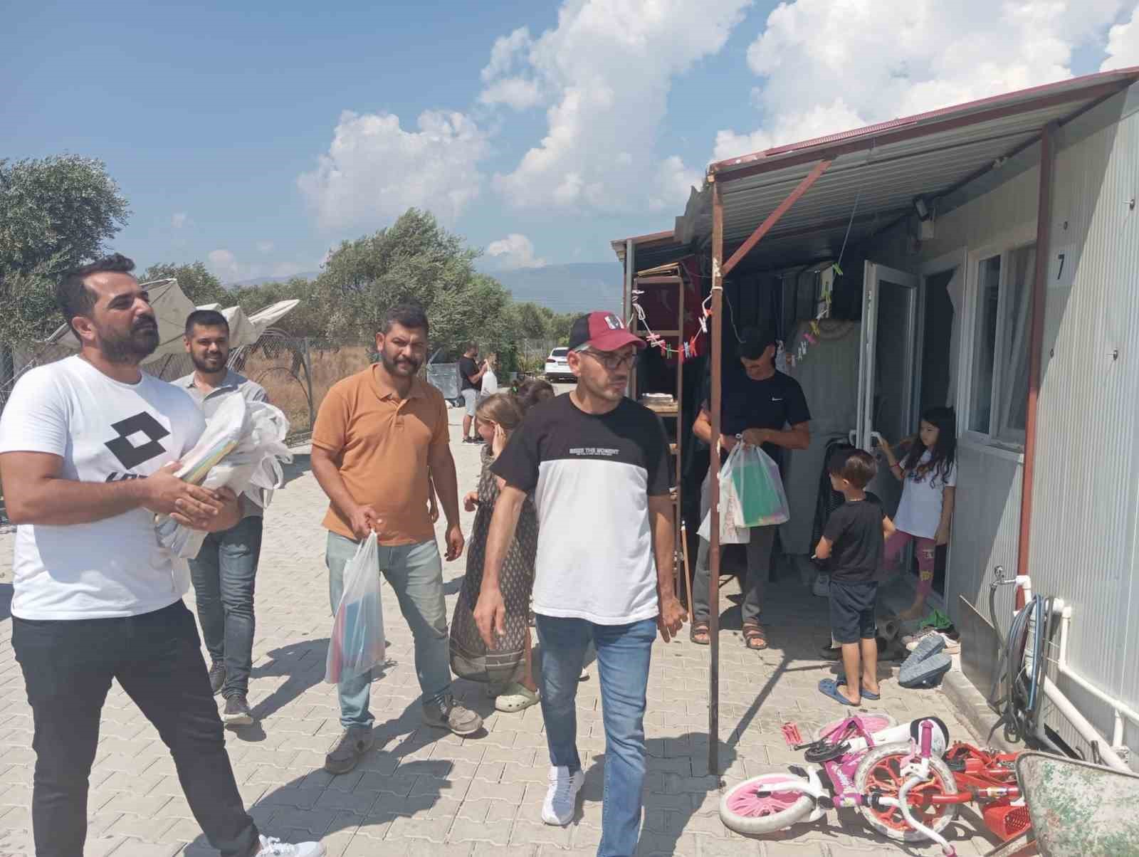 Hatayspor ve Mersin İdman Yurdu taraftarları, Antakya ilçesinde konteyner kentte yaşayan depremzede çocuklara kırtasiye malzemesi dağıttı.