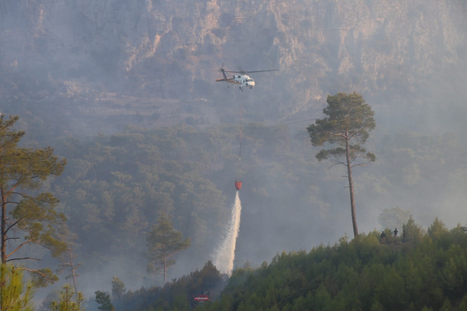 Muğla’nın Dalaman ilçesinde çıkan orman yangınında hava ekiplerinin alevlerle mücadelesi devam ediyor. Uçak ve helikopterler ardı ardına yaptıkları sortilerle alevlere su serpiyor.