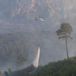 Dalaman’daki orman yangınında ekiplerin havadan ve karadan mücadelesi devam ediyor. Özellikle hava araçları adeta alevlerle savaşıyor. Yangın bölgesinde hava araçları ardı ardına yaptıkları sortilerle alevlerin üstüne su serpiyor. Uçak ve helikopterlerin havadan müdahalesi devam ederken, karadan da ekiplerin söndürme çalışmaları sürüyor. Şiddetli rüzgarla birlikte büyüyen alevleri kontrol altına almak için yoğun çaba sarf ediliyor.