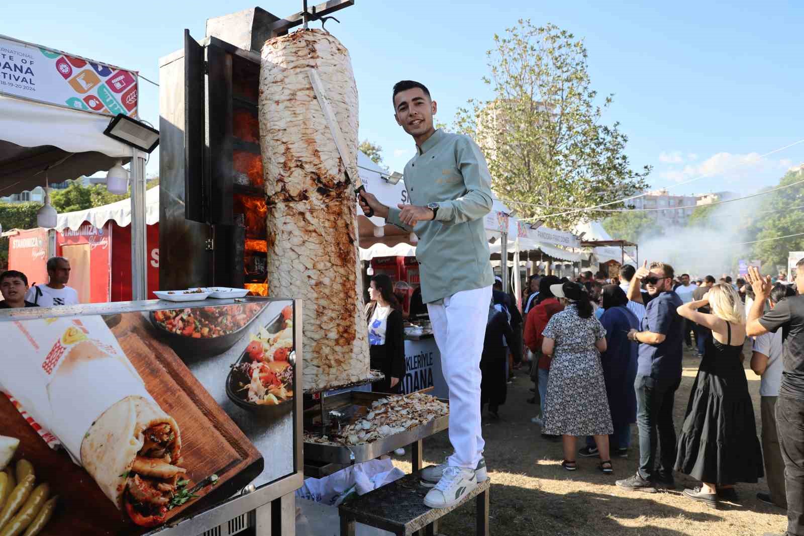 Bir başka esnaf Mehmet Nuri Erzi ise festivalde 800 kilogram ağırlığında tavuk döner taktıklarını anlatarak, “Özel ocağımızda 1 metre 15 santimetre boyunda 800 kilogram ağırlığında tavuk döner taktık. Adanalılar yemeği çok seviyor. Bizler de Adanalıları dönere doyuruyoruz” ifadelerini kullandı.