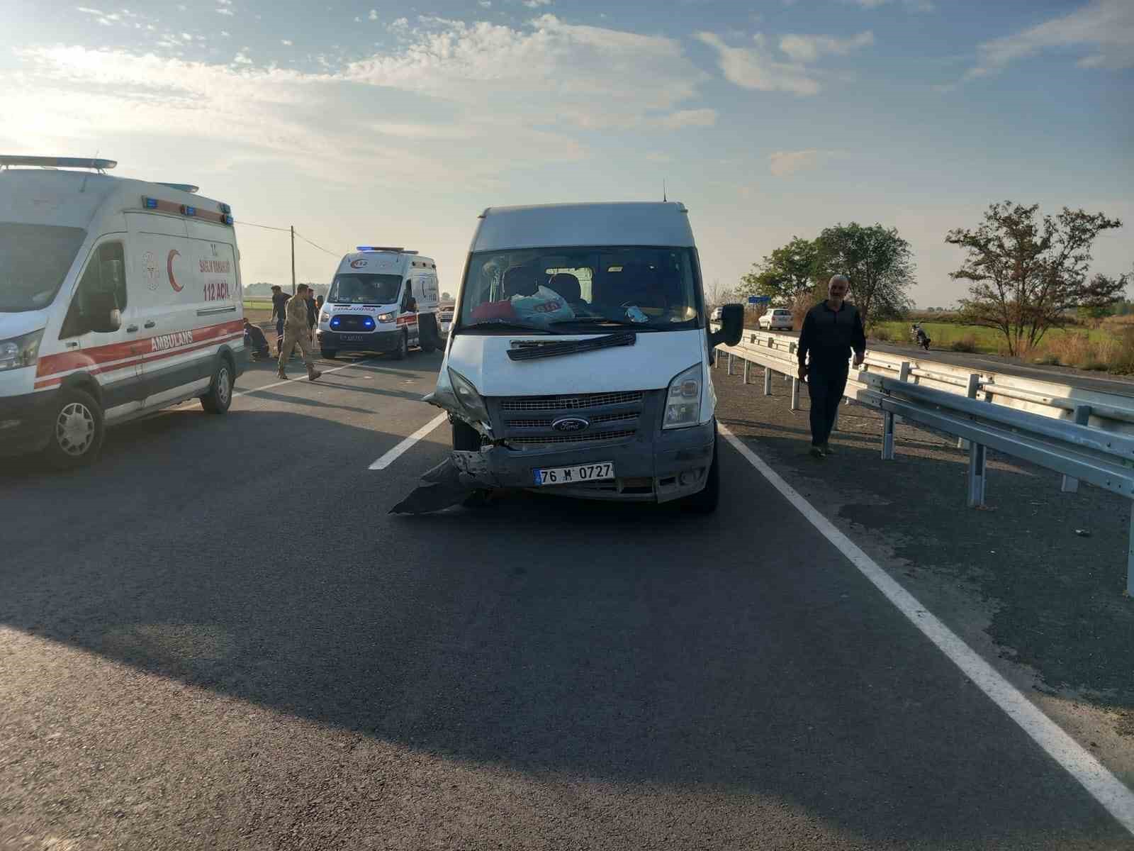 Kaza, akşam saatlerinde Karakoyunlu ilçesi Taşburun köyü yolu kesişiminde meydana geldi. Edinilen bilgiye göre, sürücülerinin ismi öğrenilemeyen 06 BV 0270 plakalı otomobil ile 76 M 0727 plakalı yolcu minibüsü çarpıştı. Kaza sonrası vatandaşların ihbarı ile olay yerine çok sayıda ambulans sevk edildi. Yaralılar ambulanslarla Iğdır Devlet Hastanesine sevk edildi. Hastaneye sevk edilen 8 yaralıdan 3’ünün durumunun ağır olduğu öğrenildi.