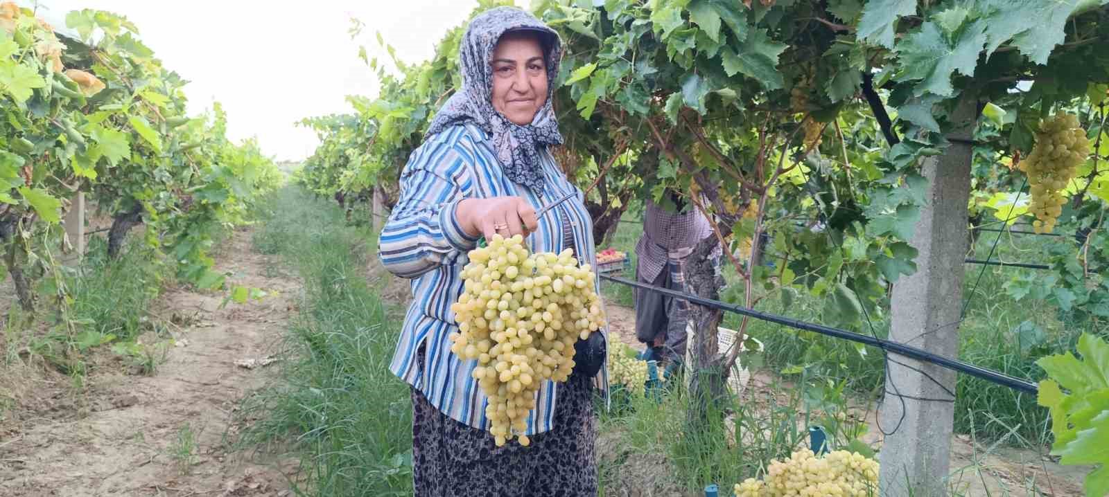 Üzümleri satın alan Mustafa Çalık ise, “Üzümlerimizi plastik kasalara poşetli ve poşetsiz olarak döşemekteyiz. Salkımların iriligi nedeniyle iki salkımı budayıp kasalara doldurduk.” diye konuştu.
