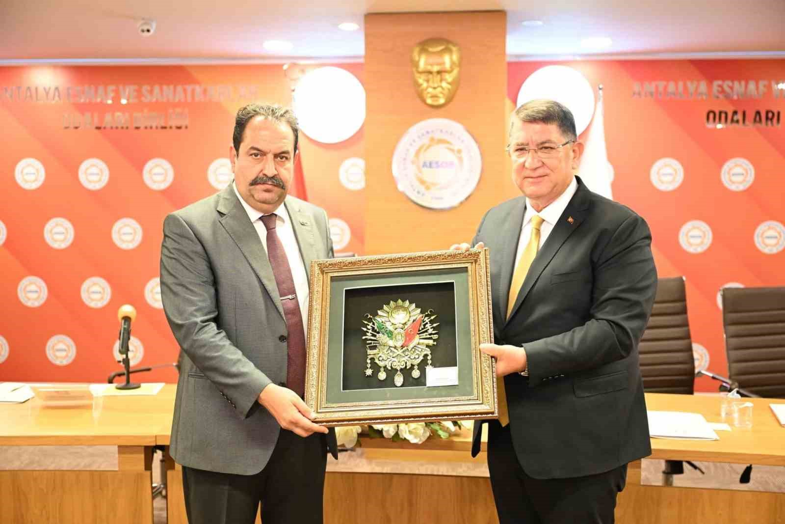 İl Emniyet Müdürü İlker Arslan, AESOB’u ziyaret ederek esnafla bir araya geldi. AESOB Başkanı Adlıhan Dere açılış konuşmasında, “Antalya Esnaf ve Sanatkârlar Odaları Birliği olarak biz merkezde 37 ilçelerimizde 38 olmak üzere toplam 75 esnaf odamız ve yaklaşık 105 bin üye esnaf ve sanatkarımızla kocaman bir aileyiz. Şehrimizde her yıl milyonlarca turiste ev sahipliği yapıyoruz. AESOB olarak biz evine ekmek götürebilmek için çalışan, alın teriyle kazanan, üreten, ticaretle uğraşan, ülkemize katma değer sağlayan tüm esnaf ve sanatkarlarımızın ve onların ailelerinin sorumluluğunu omuzlarımızda taşıyoruz. Antalya’mız çok güzel bir şehir, fakat güzel olduğu kadar da zor. Dolayısıyla esnaf ve sanatkarlarımızın yaşamış olduğu bazı sorun ve sıkıntılar var. Bizler bugün burada bu sorun ve talepleri dile getirmek, çözüm önerilerini görüşmek amacıyla bir araya geldik” ifadelerini kullandı