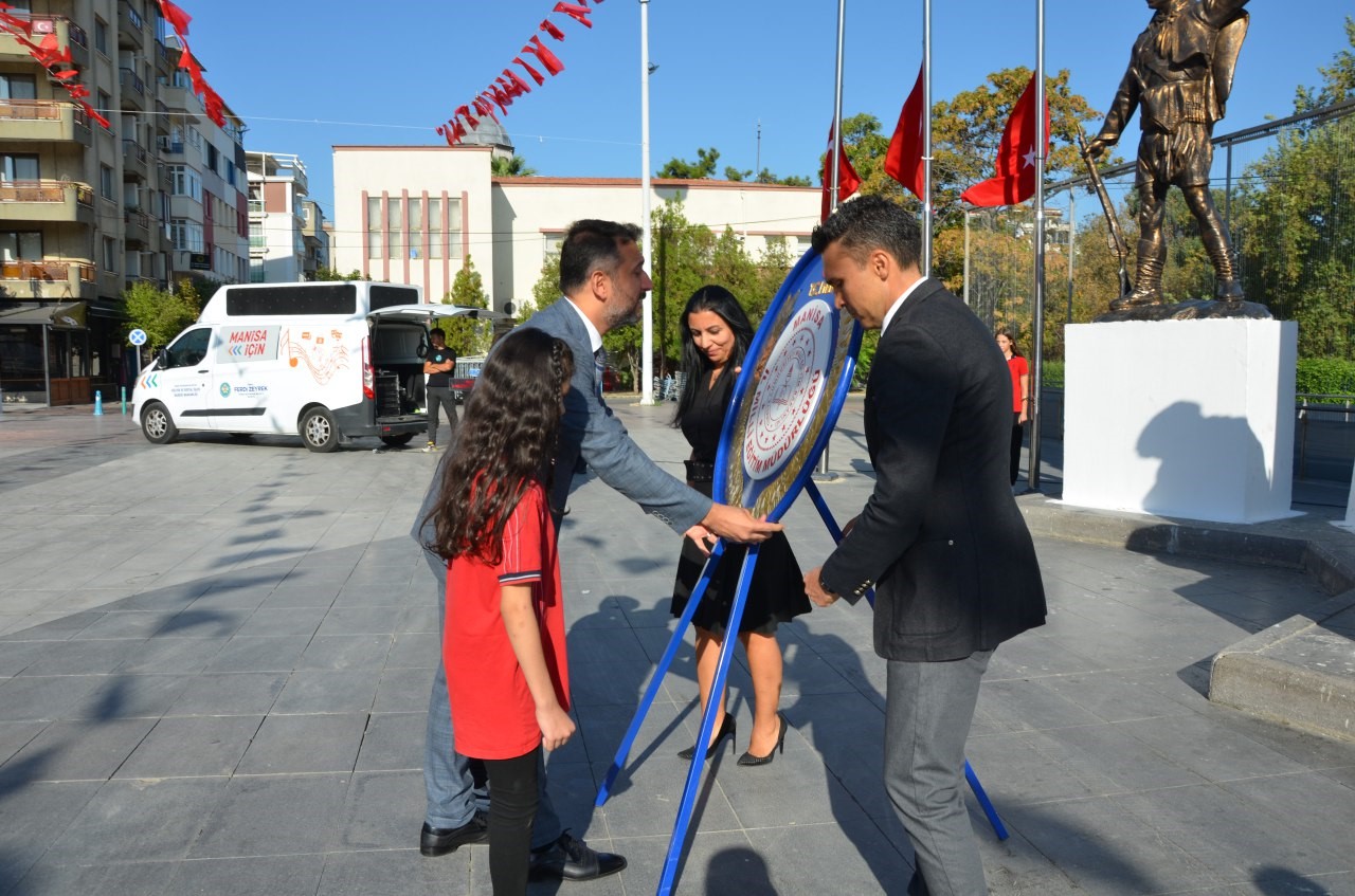 2024-2025 Eğitim Öğretim yılının açılışı ve İlköğretim Haftası Kutlaması ise Manisa İl Milli Eğitim Müdürü Mehmet Uğurelli tarafından Şehzadeler ilçesindeki Cumhuriyet Meydanında bulunan Atatürk ve Milli Egemenlik Anıtı’na çelenk sunulmasıyla başladı. Müdürlüğün çelengini öğrencilerle birlikte sunan Uğurelli, yeni eğitim öğretim yılının hayırlı olmasını diledi.