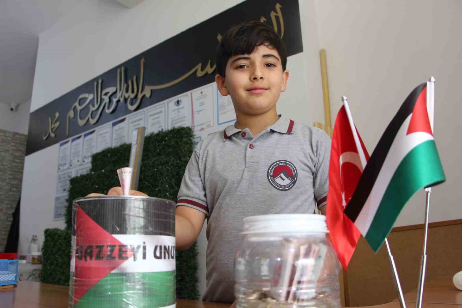 İlkokul öğrencisi Muhammet Yusuf Demirtaş, “Filistin’deki çocukları düşünüyordum. Onlara üzülüyordum. Bir gün ekmek almaya gitmiştim. Kalan parayı babamın aldığı kumbaraya attım. Sonrasında her gün atmaya başladım. Annem başka bir kumbara daha getirdi. Ona da para atmaya başladım. Orada yaşananları izleyince üzülüyorum, ağlamak istiyorum. Bu zulmün durmasını istiyorum. Harçlıklarımı biriktiriyorum, babamın verdiği parayı atıyorum. Kumbaraları teslim ettikten sonra da kumbaraya para atmaya devam edeceğim” dedi.