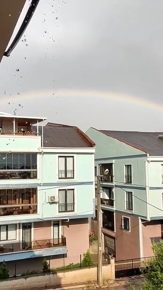 İnegöl ilçesinde sabah saatlerinde güneşli olan hava, öğle saatlerinde yerini sağanağa bıraktı. Aniden bastıran yağmura hazırlıksız yakalanan vatandaşlar, korunaklı yerlere sığındı. Yağmurun ardından ortaya çıkan güneşle birlikte gökyüzünde gökkuşağı oluştu.