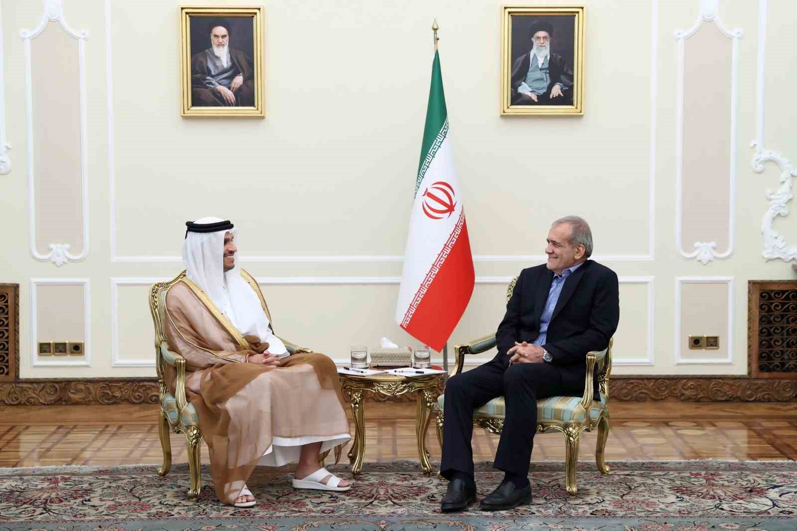 İran Cumhurbaşkanı Mesut Pezeşkiyan ise Al Thani ile görüşmesinde İsrail’in Gazze’de devam ettirdiği savaşın engellenmesi gerektiğini vurgulayarak, “İslam ülkeleri bir araya gelerek Siyonist rejim destekçilerini Gazze’de devam eden savaşı durdurmaya zorlamalıdır. Gazze’de her bir saatte insanlık suçu işlenmekte. Ancak yeri geldiğinde bir kişi için seslerini yükselten ve insan hakları savunucusu olduklarını iddia eden bazı ülkeler işlenen bu savaş suçları karşısında sessizliklerini koruyorlar” dedi.