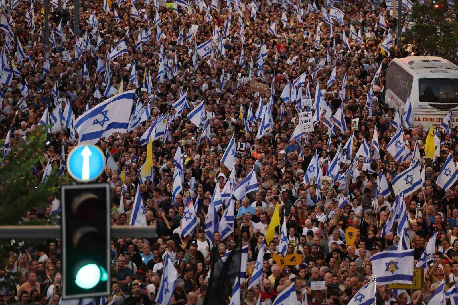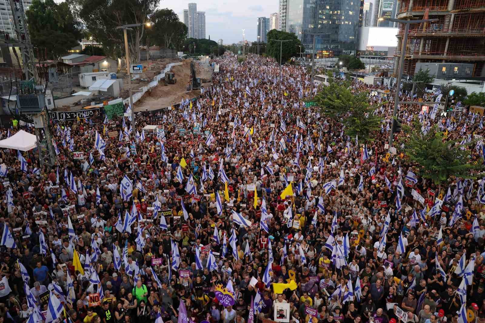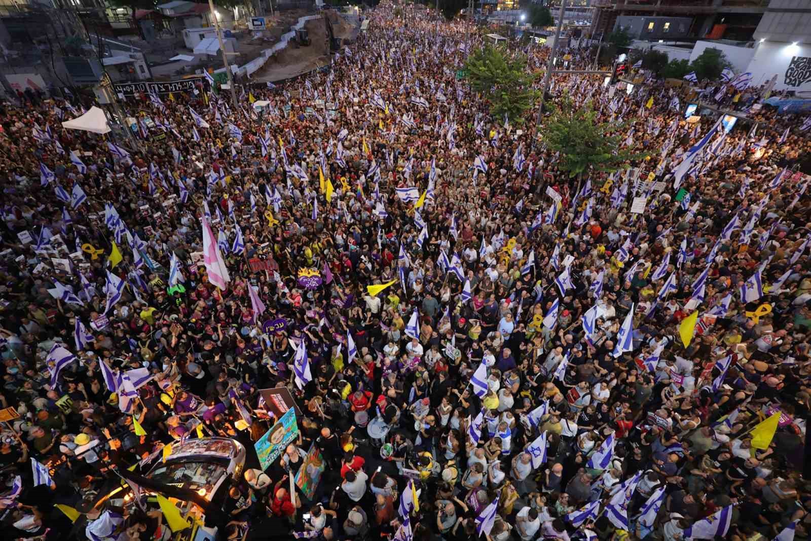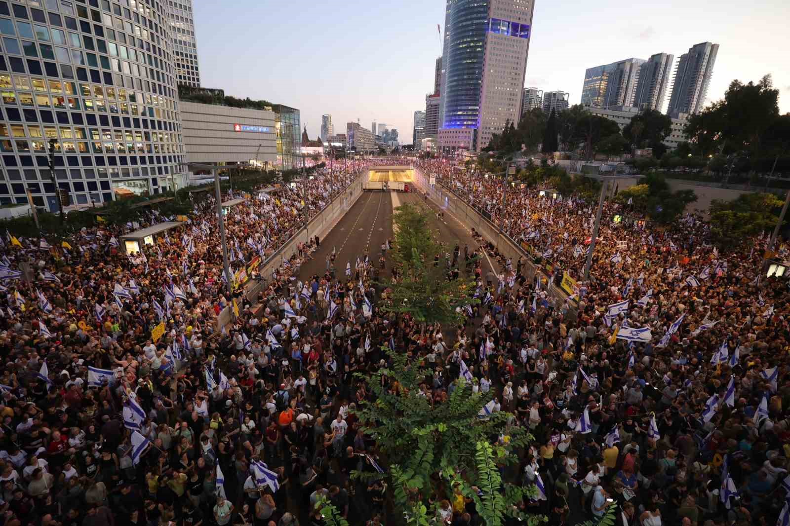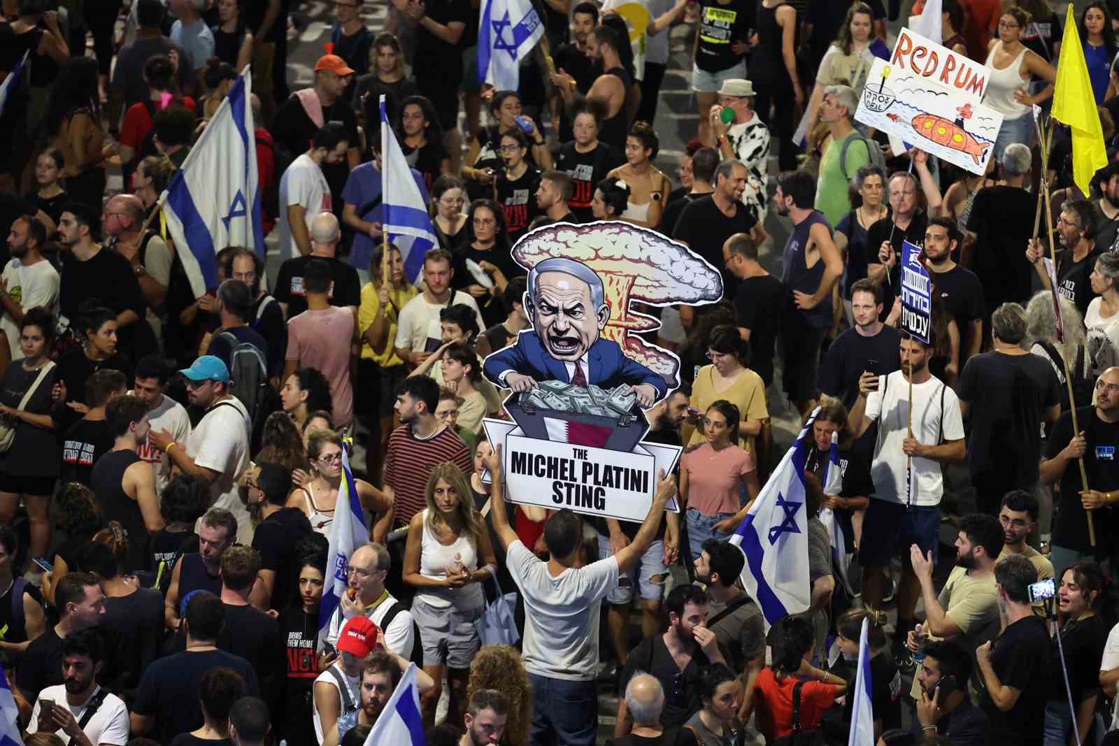 İsrail’in başkenti Tel Aviv’de düzenlenen hükümet karşıtı protesto gösterisinde binlerce kişi Başbakan Binyamin Netanyahu’ya tepki gösterirken, “Her gün Netanyahu’nun Rus ruleti. Biz buna izin vermeyeceğiz” sloganları atıldı.