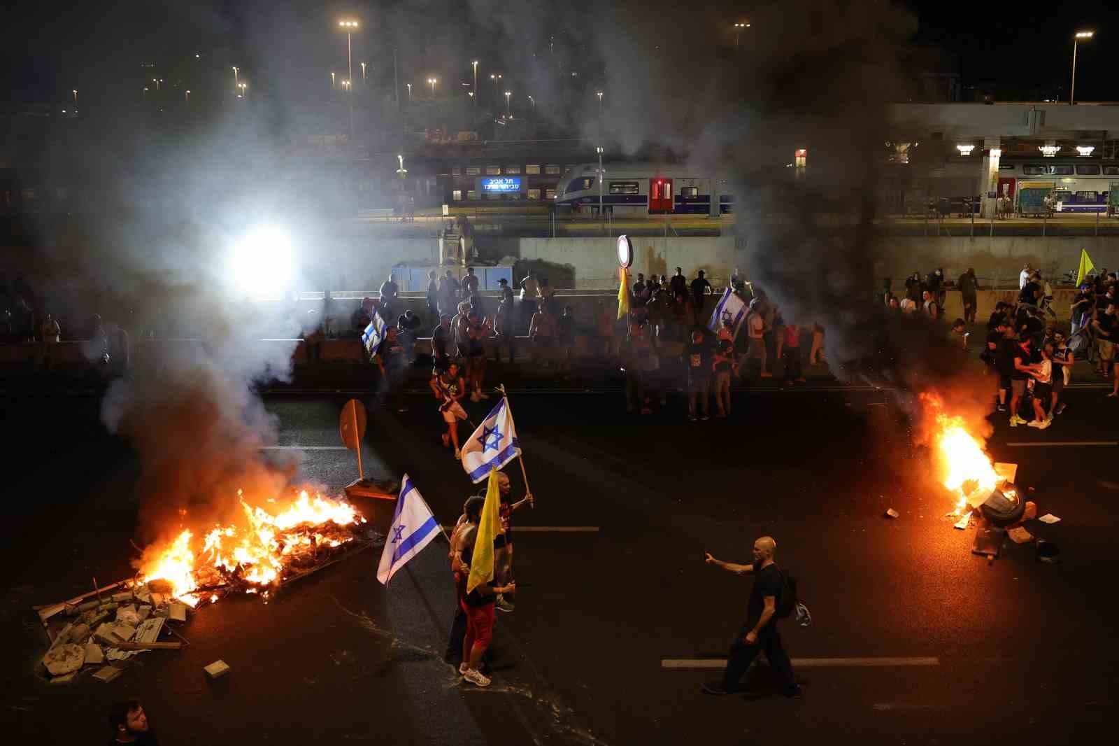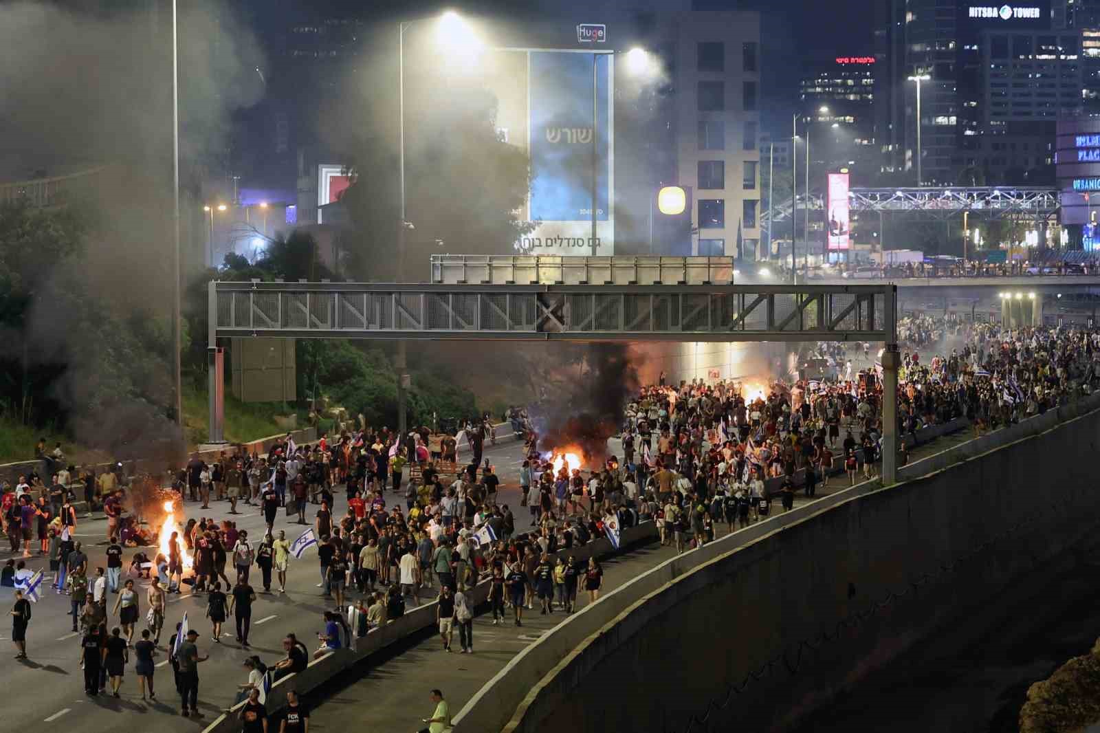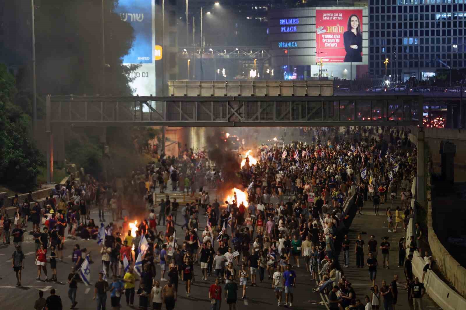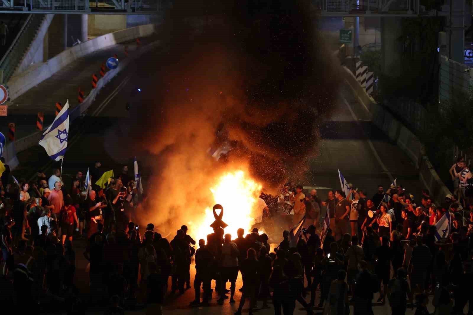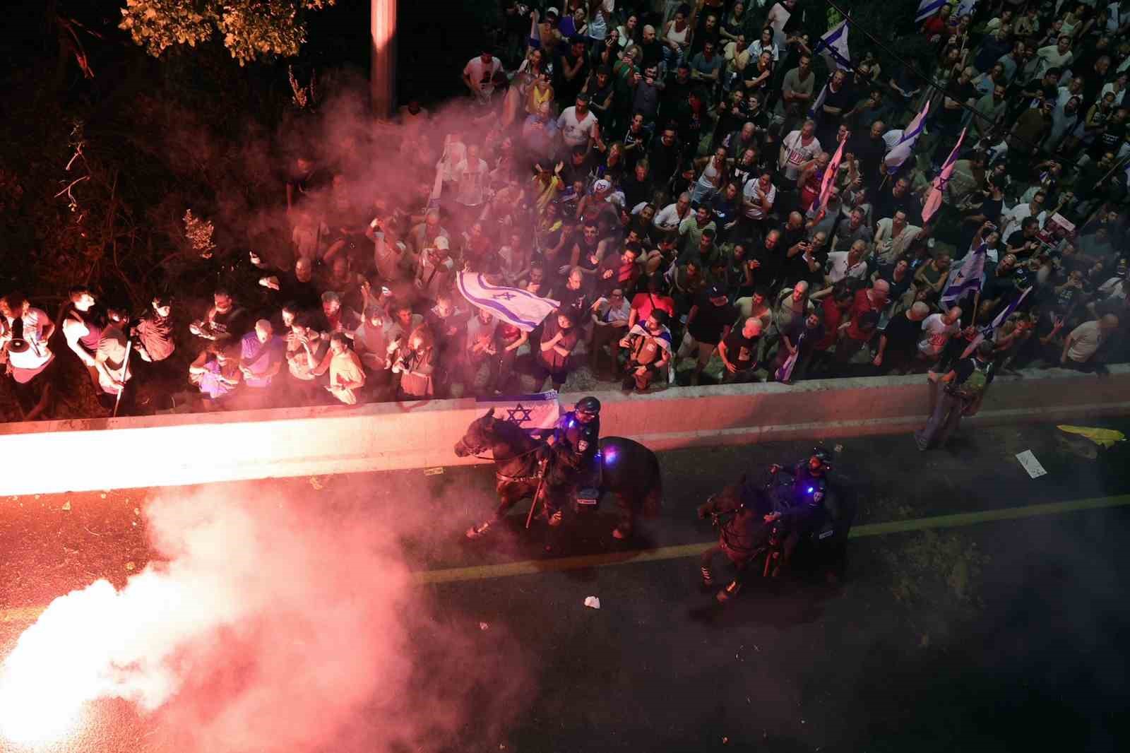 Başkentteki Ayalon otoyolunu trafiğe kapatan binlerce kişi, Netanyahu’nun ateşkes anlaşmasını kabul etmesi için sloganlar atarken, polis gösteriyi dağıtmak için tazyikli su kullandı. Çok sayıda gösterici otoyolda ateş yaktı.