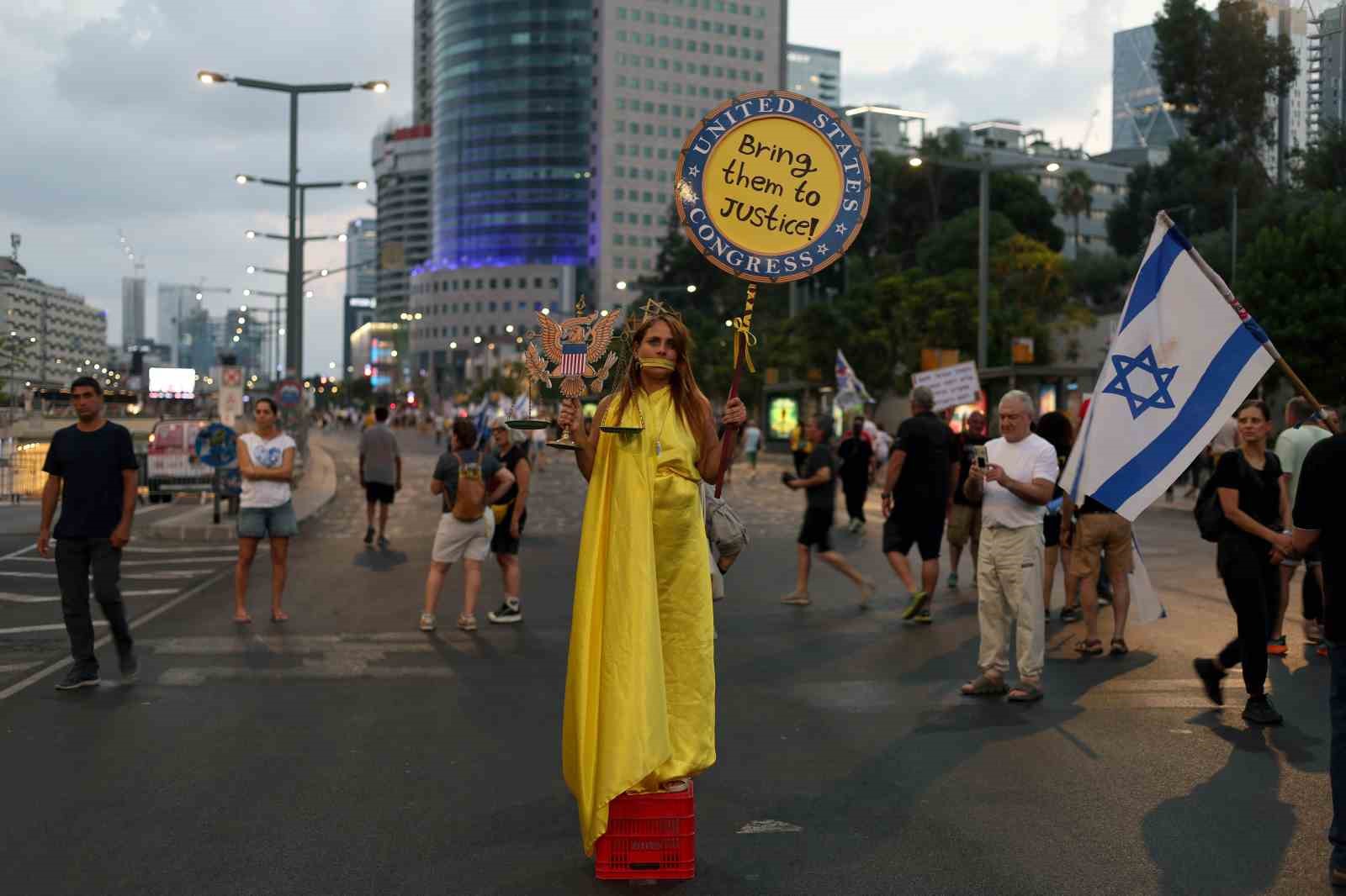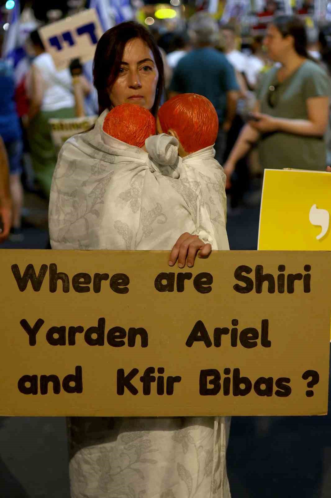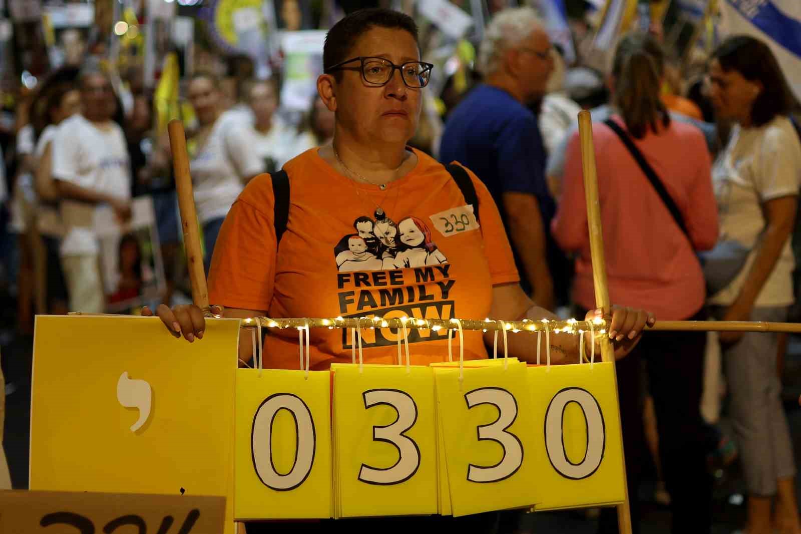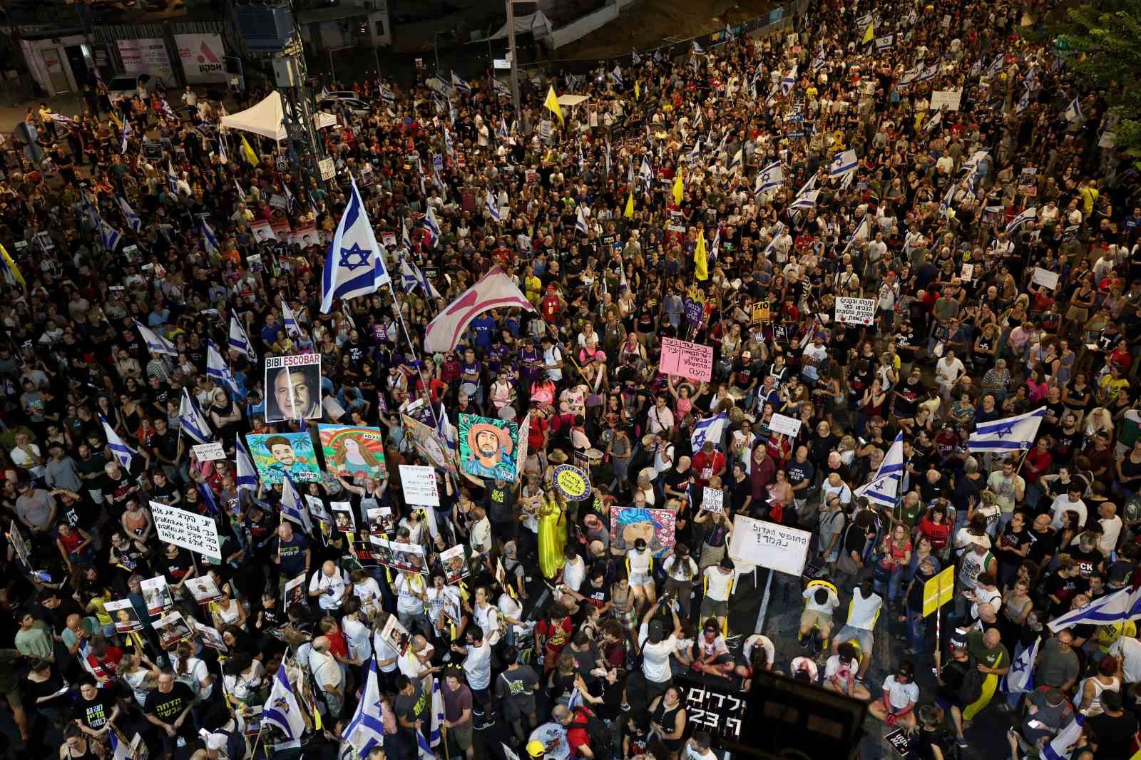 İsrail’in başkenti Tel Aviv’de düzenlenen esir protestosunda hükümete tepki gösteren binlerce İsrailli istifa çağrısı yaparken, kalabalık Başbakan Binyamin Netanyahu için “devletin sabotajcısı” ifadelerini kullandı.