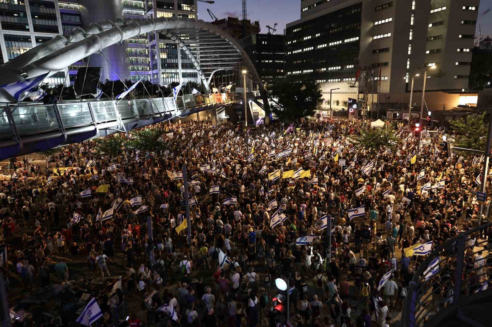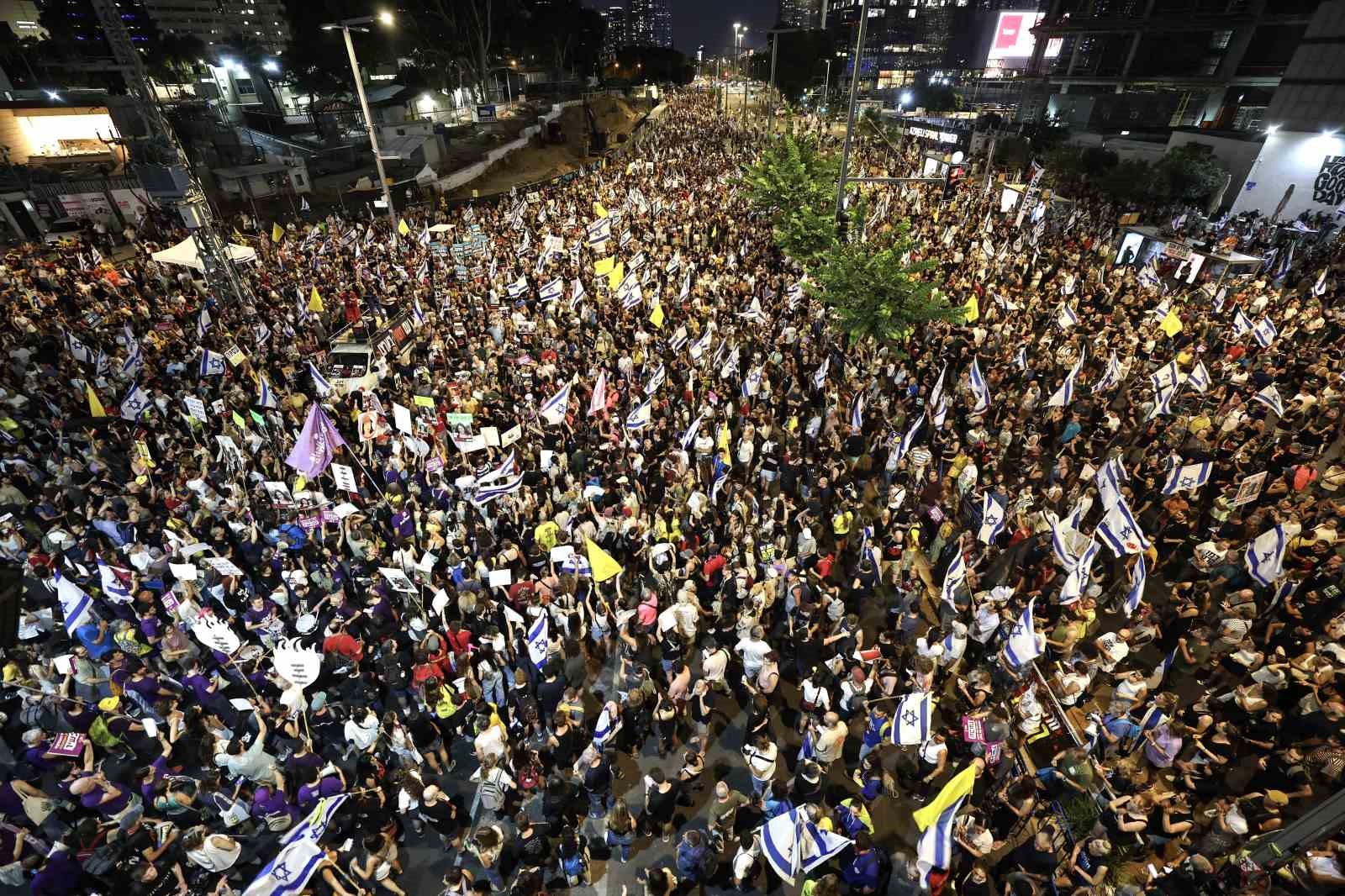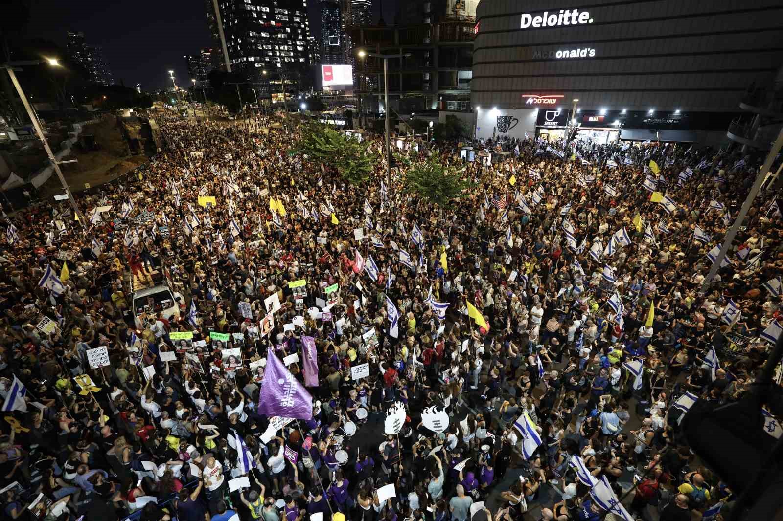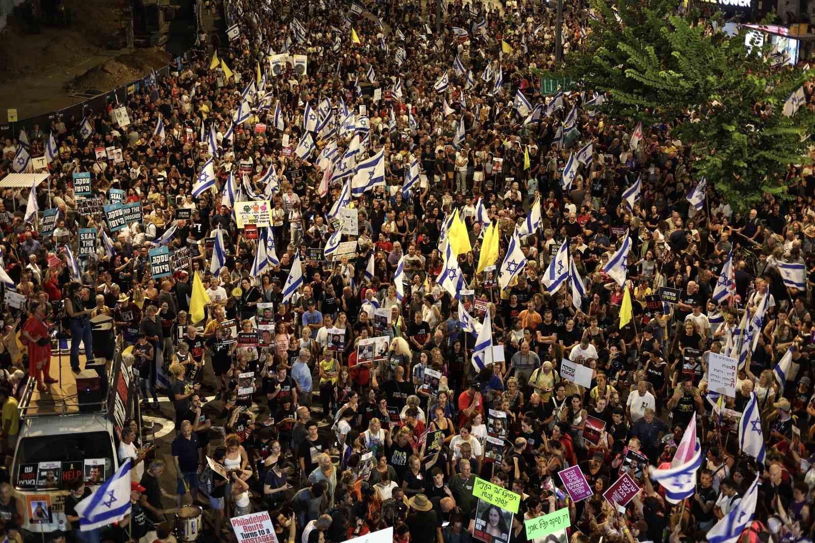 İsrail’de devam eden hükümet karşıtı gösterilerde, “Bu kadar kan dökmek yeter, masada bir anlaşma var!” sloganları atan binlerce kişi, Netanyahu’dan Gazze Şeridi’nde ateşkes ve esir anlaşmasının kabul edilmesini talep etti.