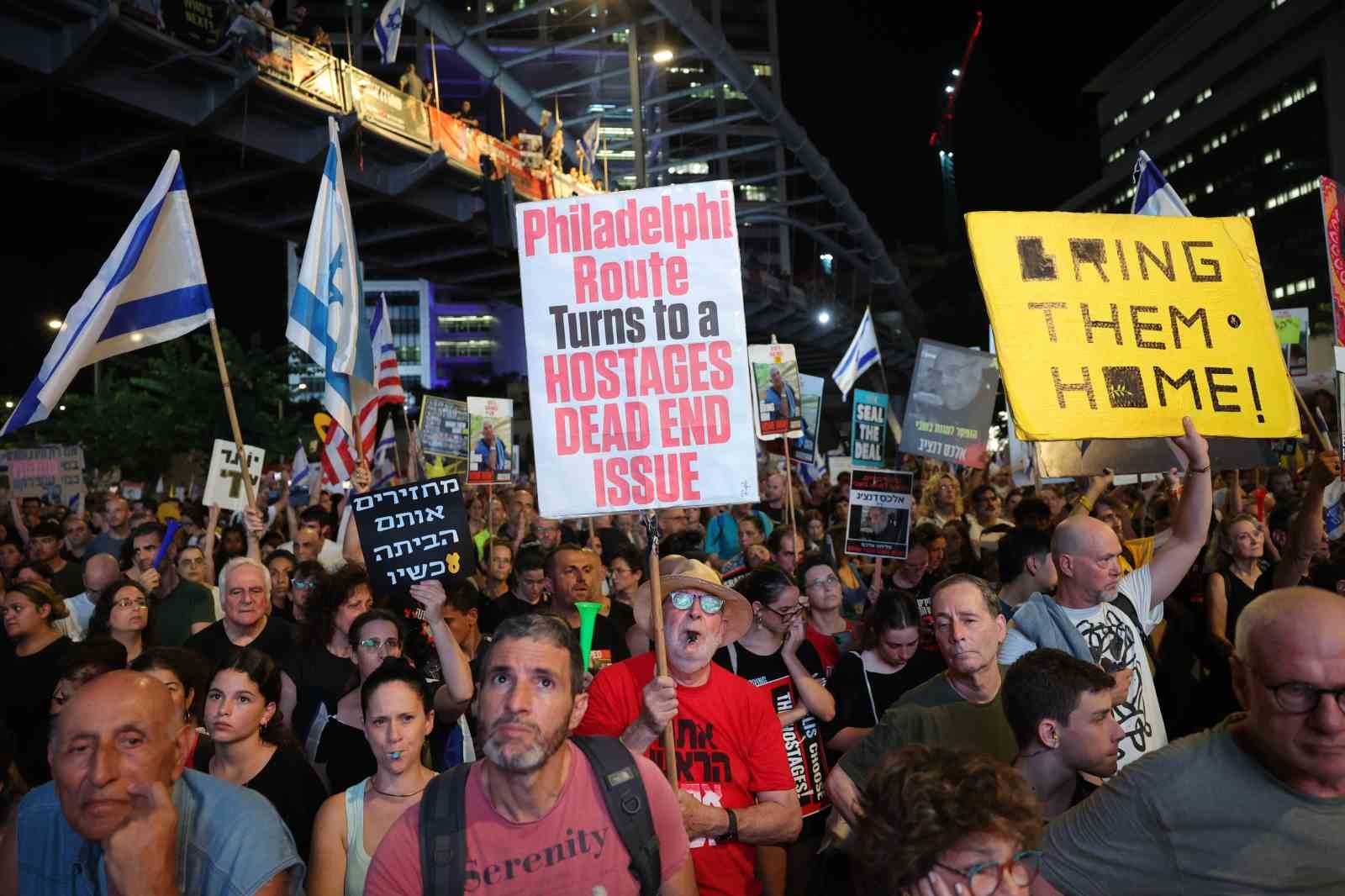 İsrail’de Başbakan Binyamin Netanyahu ve hükümetine tepkiler sürüyor. Gazze Şeridi’nde 6 esirin ölümünün ardından başkent Tel Aviv’de şiddetlenen gösteriler bugün de gerçekleşti. Yaklaşık 500 bin kişi Netanyahu’ya ateşkes ve esir anlaşmasına imza atması için çağrı yaptı. Protesto gösterisinde, “Philadelphia Koridoru esir çıkmazına dönüşüyor”, “Onları eve getirin”, “Binyamin Netanyahu İsrail’i öldürüyor” pankartları taşıyan göstericiler, Netanyahu aleyhinde sloganlar attı.