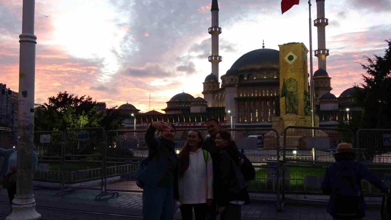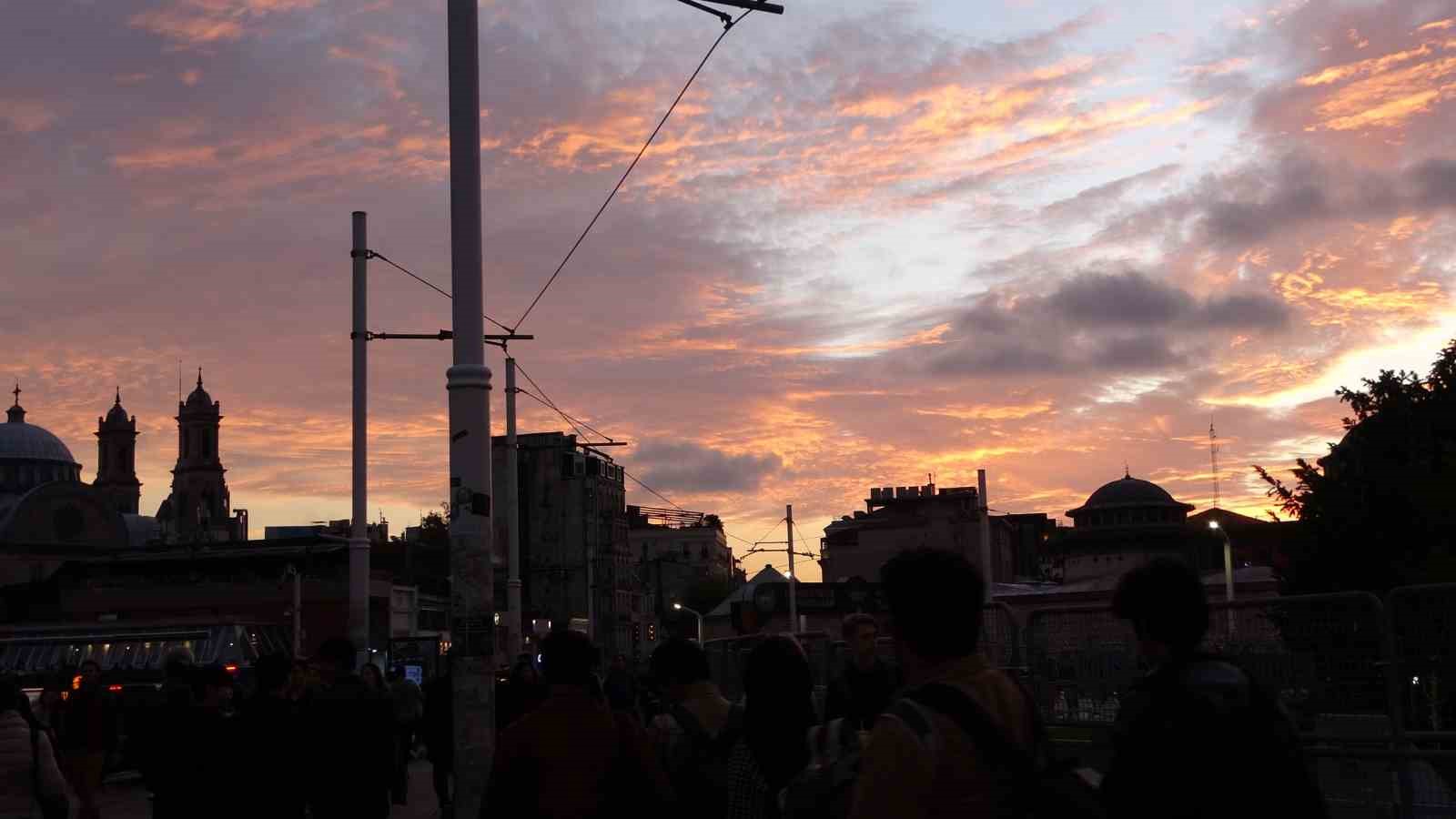 İstanbul’da akşam saatlerinde kızıla bürünen gökyüzü kartpostallık görüntüler oluşturdu. Gün batımının Taksim Camii ile bütünleştiği anlar görenleri kendine hayran bıraktı. Beyoğlu’ndaki birçok yerli ve yabancı turist o anları cep telefonlarıyla görüntüledi.
