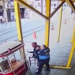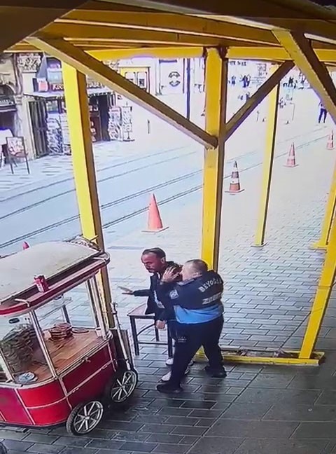 Beyoğlu’nda bulunan İstiklal Caddesi’nde bir şüpheli, polis memuruna bıçakla saldırdı. Hastaneye kaldırılan polisin tedavisinin devam ettiği öğrenilirken, yaşanan o anlar güvenlik kamerasına yansıdı.