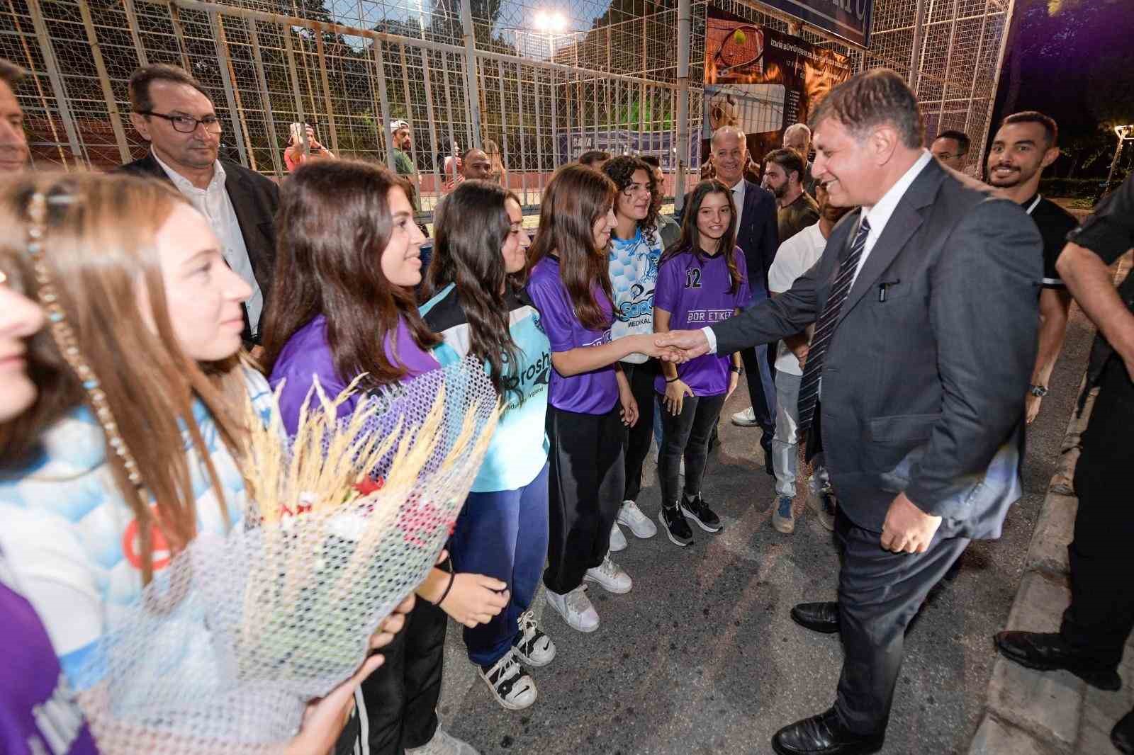 Törende İzmir Amatör Spor Kulüpleri Federasyonu Başkanı Efkan Muhtar, Başkan Tugay’a sporun gelişimine gösterdiği katkıdan dolayı plaket verirken milli sporcular ise Cemil Tugay yazılı 35 numaralı ay yıldızlı milli formayı hediye etti. Törene katılan sporcularla hatıra fotoğrafı çektiren Başkan Tugay, minik sporcuların formalarını imzaladı.