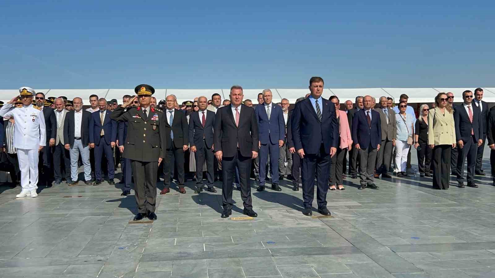 Cumhuriyet Meydanı’nda ise İzmir Valisi Süleyman Elban, Ege Ordusu ve Garnizon Komutanı Orgeneral İrfan Özsert, Büyükşehir Belediye Başkanı Cemil Tugay, Atatürk Anıtı’na çelenk sundu. Ardından saygı duruşunda bulunulup, İstiklal Marşı okundu.