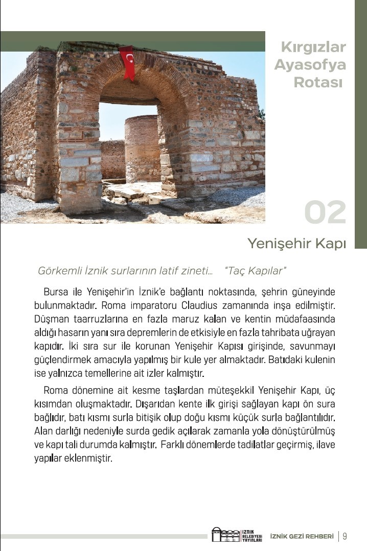 Kırgızlar-Ayasofya, Ayasofya-Lefke ve Antik Su Yolları-Bazilika rotalarıyla İznik’i ziyaret edeceklere büyük kolaylık sağlayacak gezi rehberine internet ortamında da erişilebiliyor.