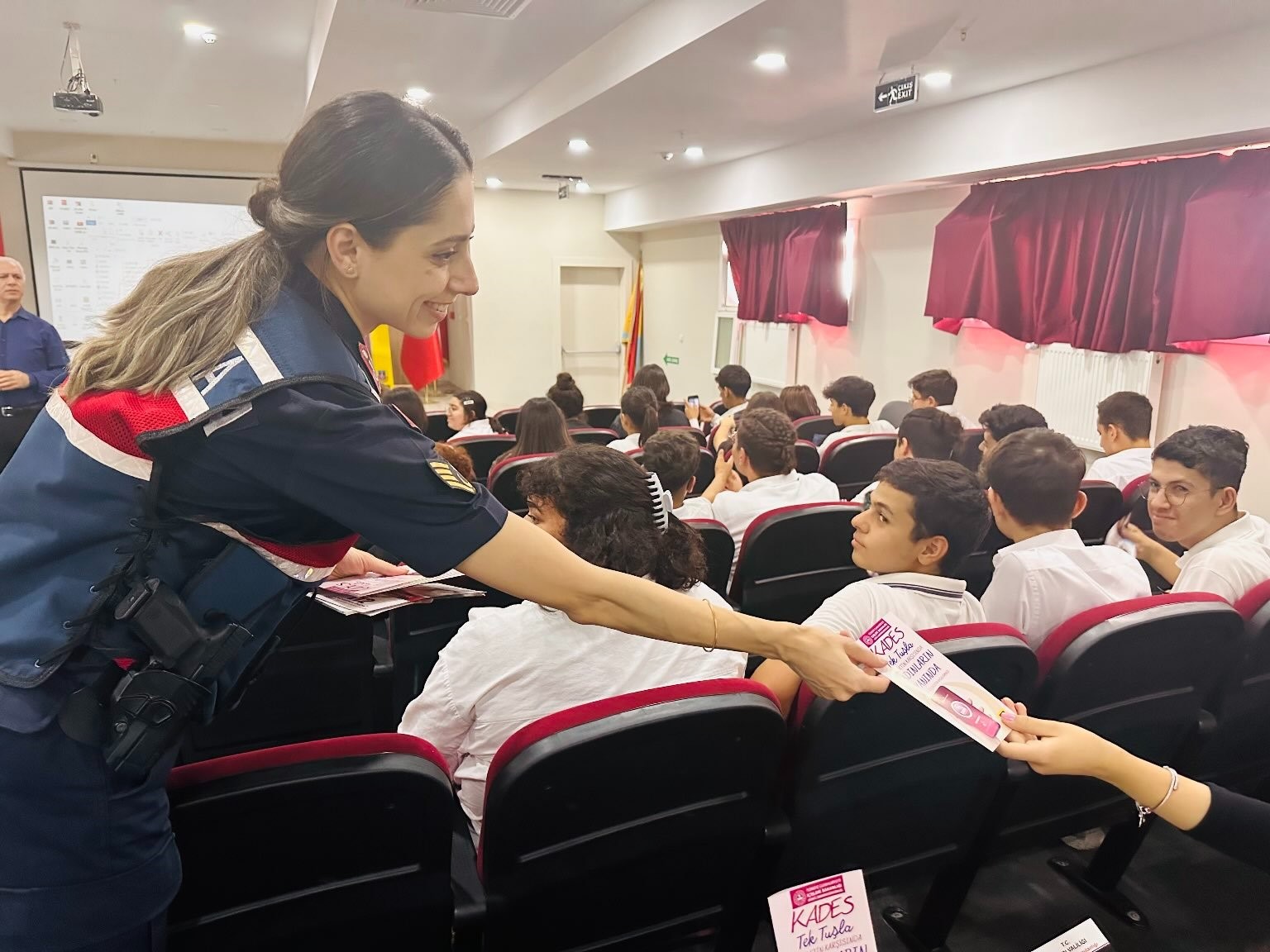 Aydın’ın Efeler ilçesindeki Kadıköy Abdülhamit Han Mesleki ve Teknik Anadolu Lisesi öğretmenleri ve eğitim gören öğrencilere jandarma tarafından çeşitli konularda eğitim verildi.
