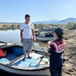 Aydın İl Jandarma Komutanlığı Bafa Gölü Tabiat Parkı’nda balıkçılara denetim gerçekleştirildi.