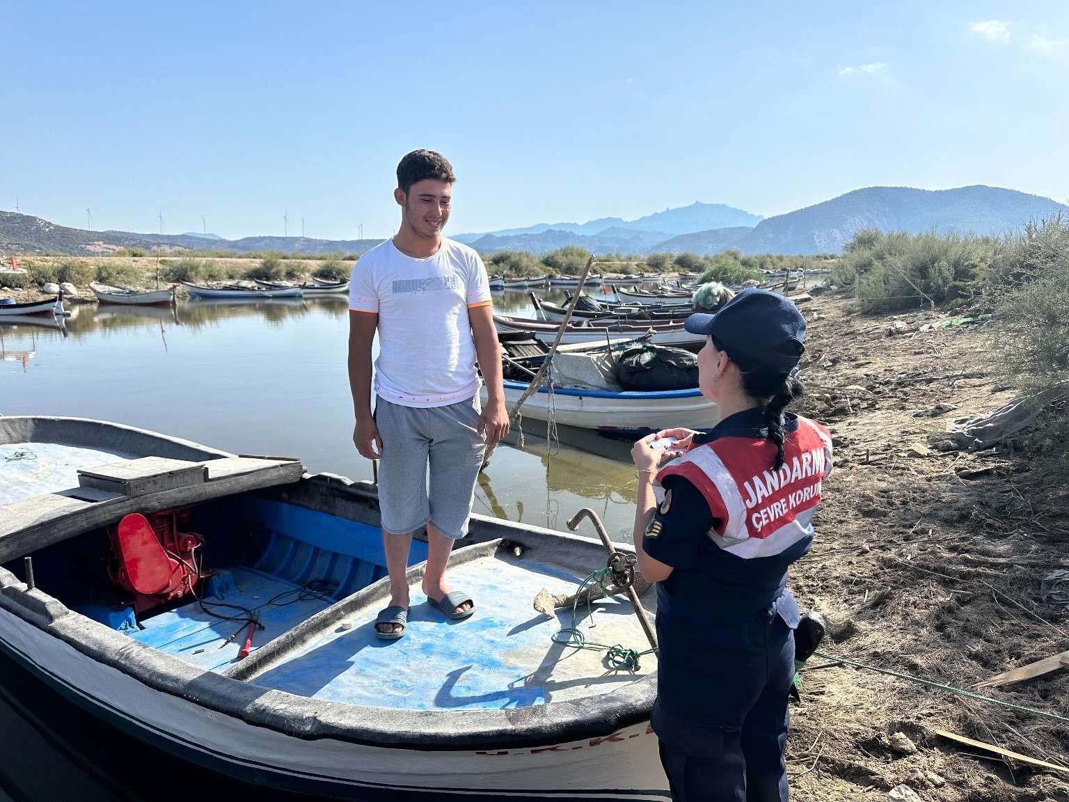 Aydın İl Jandarma Komutanlığı Bafa Gölü Tabiat Parkı’nda balıkçılara denetim gerçekleştirildi.