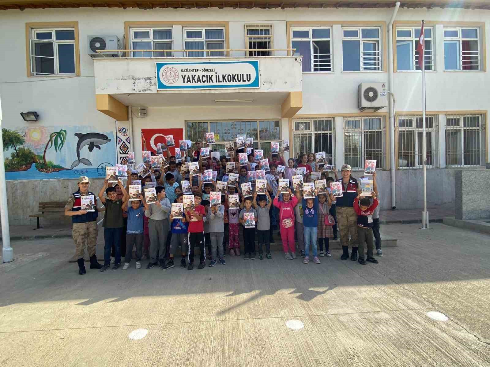 Eğitim sonunda öğrencilere Jandarma dergisi, boyama kitabı ve çeşitli hediyeler dağıtıldı.