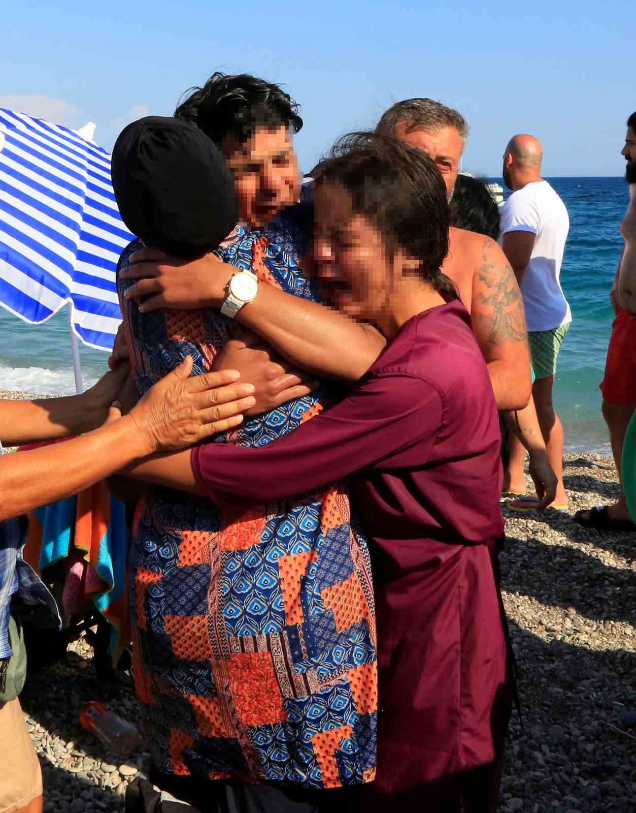 Çocuklarının denizde boğulduğunu düşünün ailenin hüzün gözyaşları, gencin cankurtaranlar tarafından bulunup ailenin de bulunduğu arama noktasına getirilmesi ile sevinç gözyaşına dönüştü.