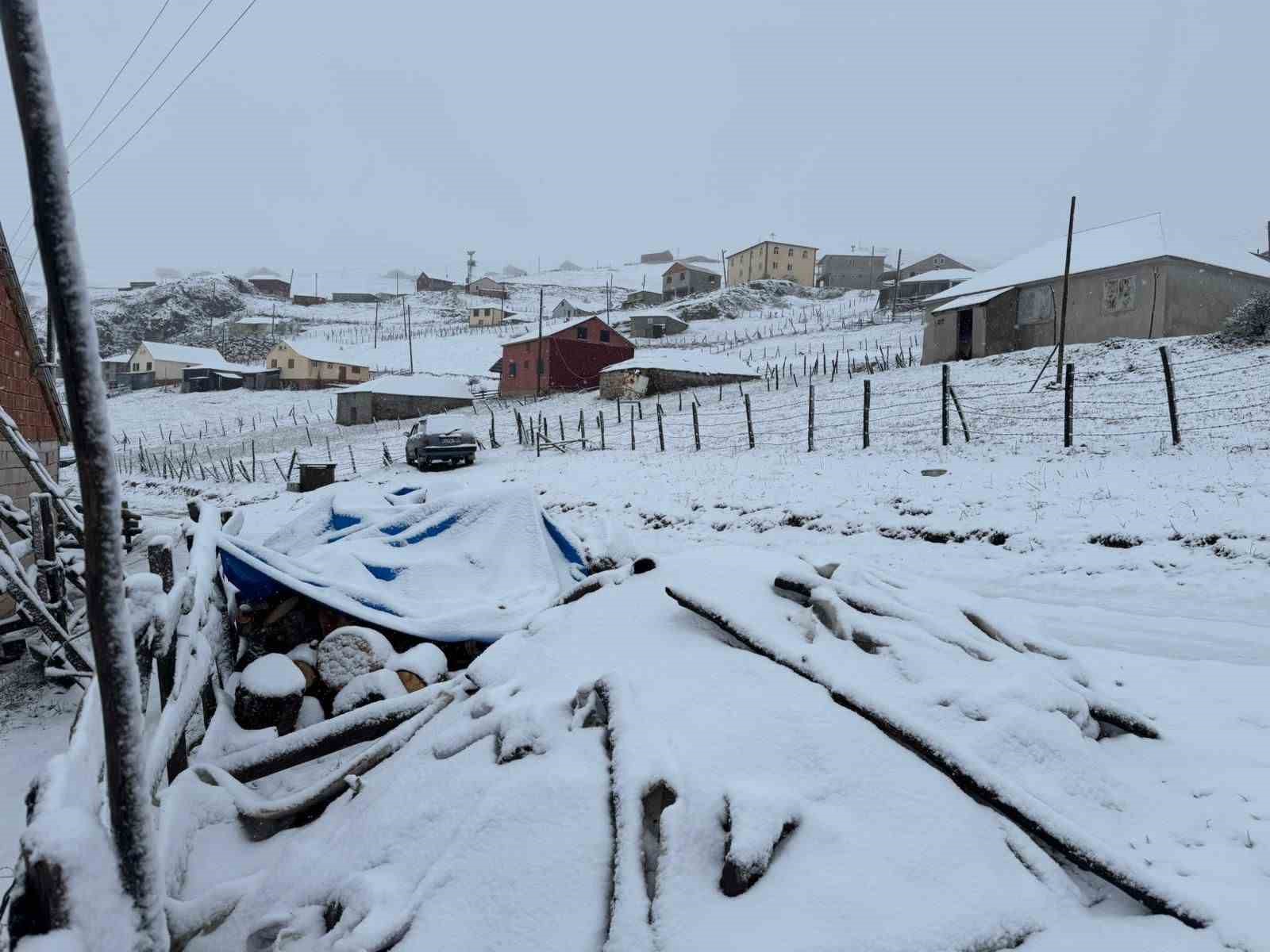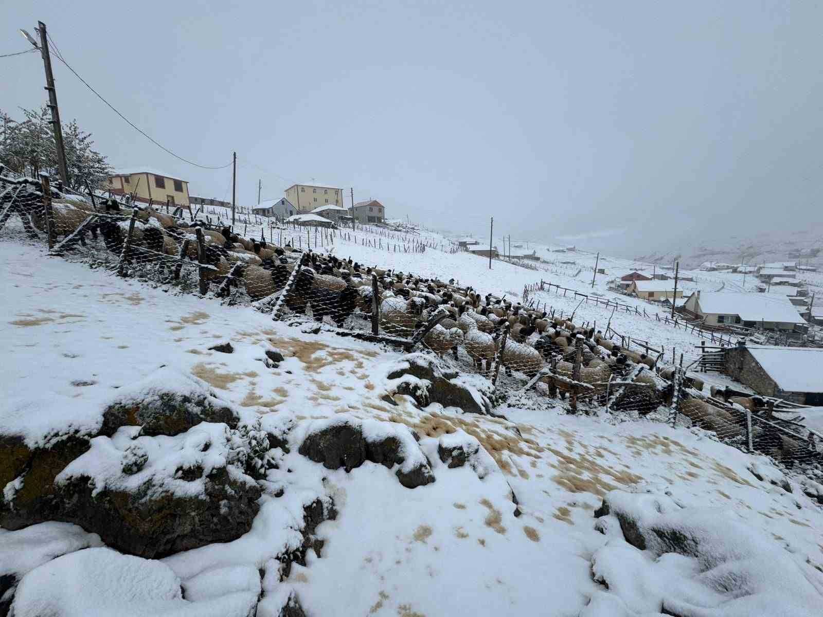 Doğu Karadeniz Bölgesi’nde yaylacılık kültürünün yaşatıldığı en büyük yaylalardan biri olan 2 bin 200 metre yükseklikteki Kadırga Yaylası’na karın düşmesi ile birlikte yaylacılar da sürüleri ile dönüşe geçmeye başladı.