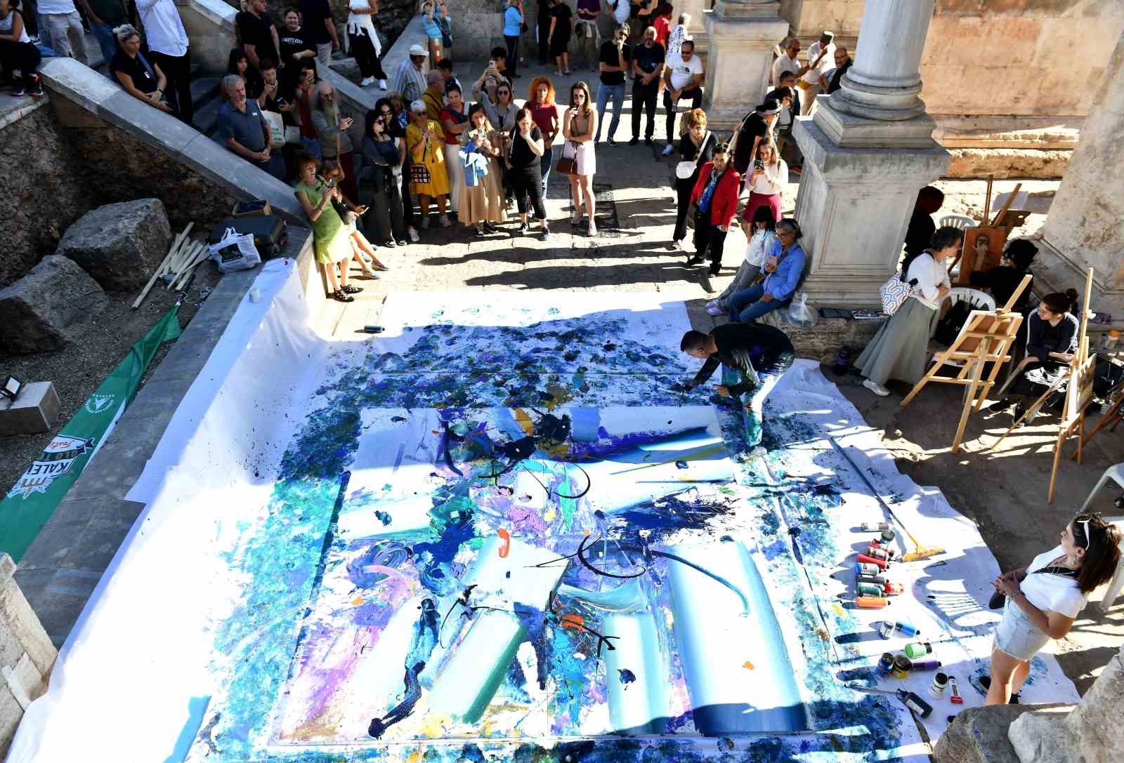 Bir diğer çarpıcı performans ise Prof. Dr. Orhan Cebrailoğlu’nun “Göç döngüsü” çalışmasıydı. Cebrailoğlu, Hadrian Kapısı’nda rengarenk boyalarla göçün hem kişisel hem de toplumsal hafızadaki izlerini simgeleyen dinamik bir tablo yaptı. Soyut ve lirik bir dille kendi duygularını bir müzik eşliğinde tuale taşıyan Cebrailoğlu, kendisinin de bir otuz yıl önce Azerbaycan topraklarından geldiğini, göçün kendi yaşamında da derin izler bıraktığını vurgulayarak, bu performansla tarihin ve kişisel travmaların kesiştiği noktada göçün ortaya çıkardığı döngüyü izleyicilere sundu.
