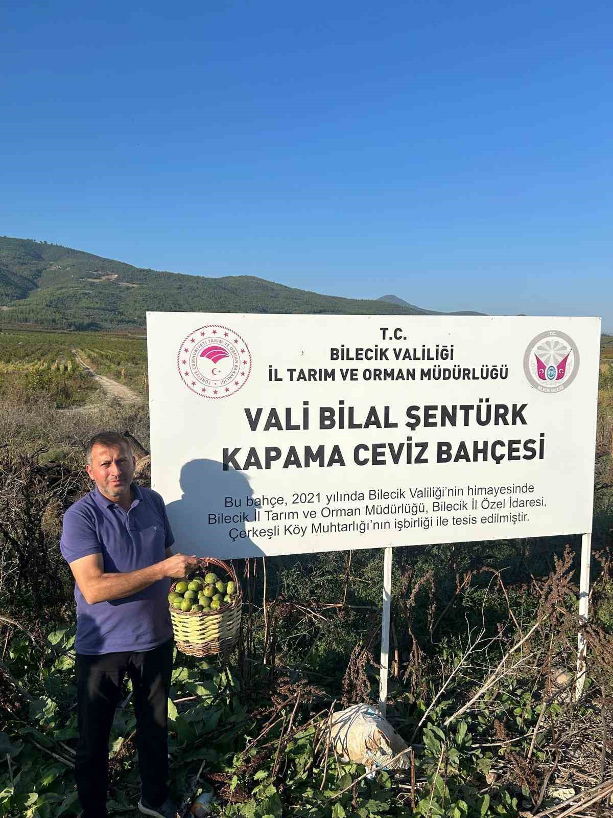 OSMANELİ İLÇESİNDEKİ 130 HANELİ ÇERKEŞLİ KÖYÜNDE, KAVAKLIK ALAN BOZULARAK DİKİLEN 4 BİN 500 CEVİZ FİDANLARINDAN İLK HASAT YAPILDI.