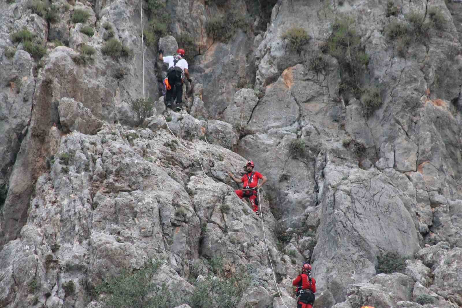 Ekipmanlarıyla birlikte yaklaşık 170 metre yüksekliğe tırmanan ekipler, keçilerin güvende olduğu bilgisi gelmesi üzerine kurtarma çalışmasını sonlandırdı.