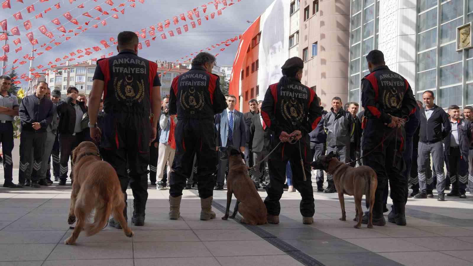 Eğitimin ardından Ankara İtfaiyesi K-9 Arama Kurtarma ekipleri tarafından gerçekleştirilen gösteride, afetlere müdahalede büyük katkı sağlayan eğitimli köpekler yeteneklerini sergiledi. Düzenlenen Afet Farkındalık ve Yangın Eğitimi, güvenlik personellerine sertifikalarının verilmesiyle son buldu.