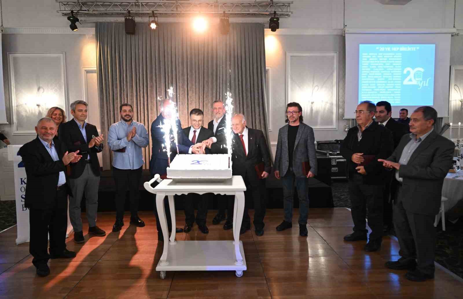 Etkinlikte, OSBÜK Denetim Kurulu Üyesi Ömer Ünsal tarafından KOSAB Başkanı Cem Hısımcıl’a Türkiye haritası şeklinde tasarlanmış Türk Bayrağı hediye edildi. Ayrıca, Kestel Kaymakamı Recep Öztürk tarafından önceki dönem Kestel Belediye Başkanı Yener Acar ve BTSO Başkanı İbrahim Burkay ile birlikte KOSAB’ın kuruluşunda emeği geçen isimlere teşekkür plaket verildi. Programın sonunda, 20. yıl pastası da kesildi.