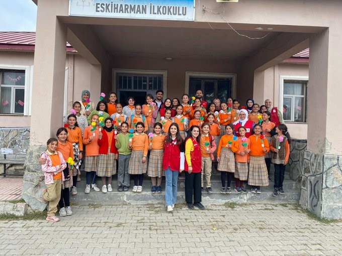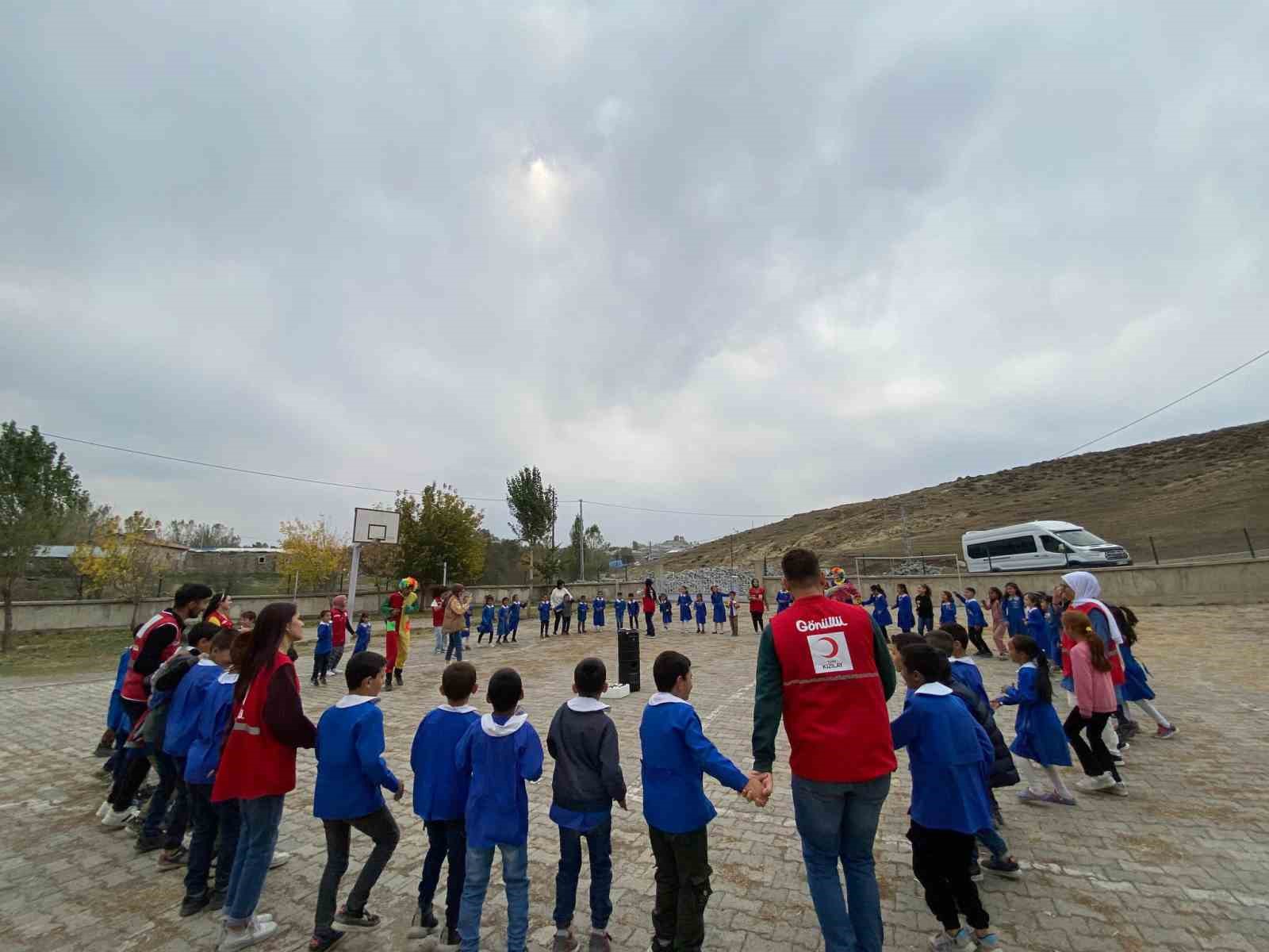 Türk Kızılay’ı Ağrı Şubesi gönüllüleri, köy okulu öğrencileriyle bir araya gelerek eğlendi.