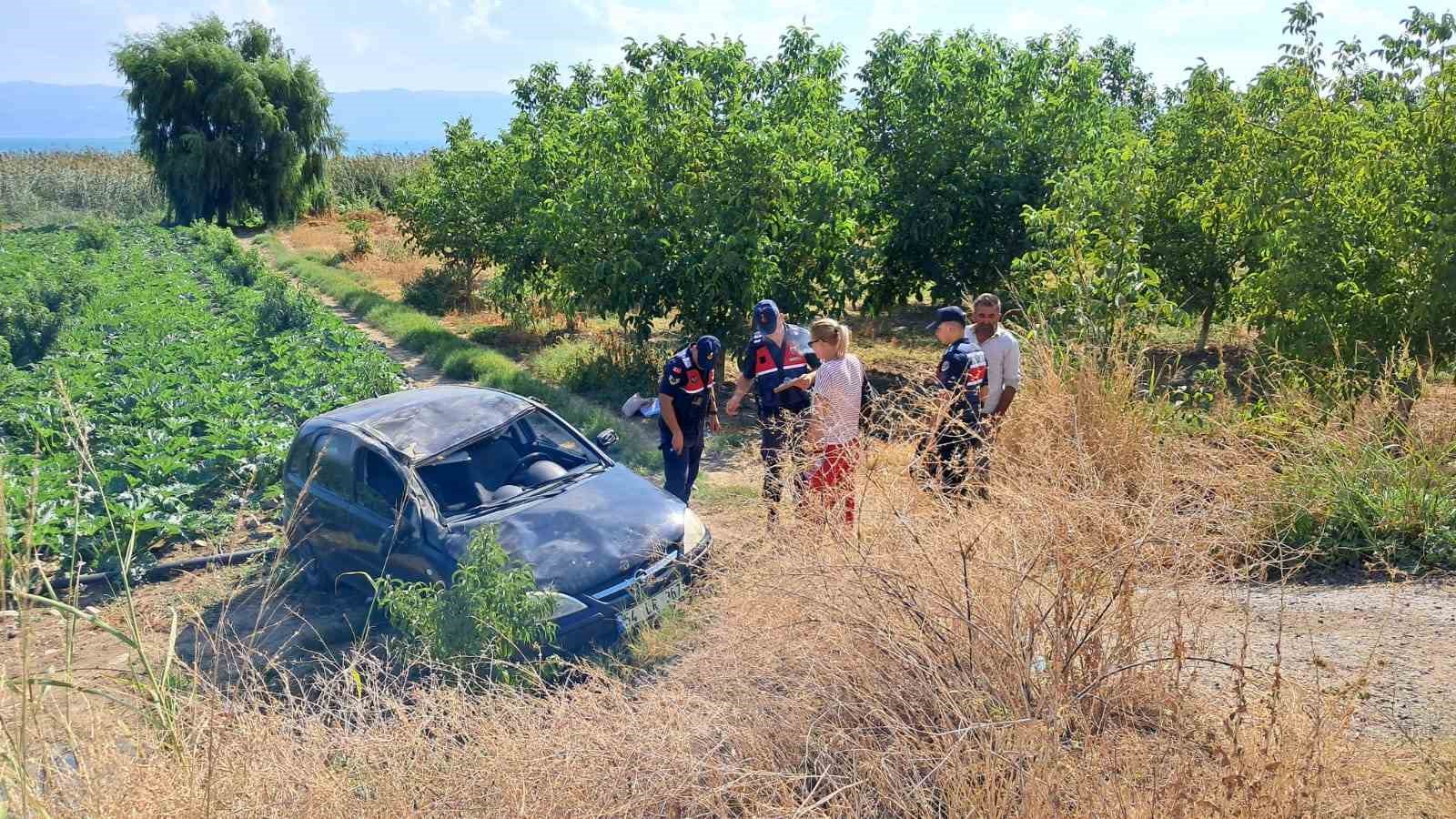 Bursa’nın İznik ilçesinde otomobiliyle tarlaya uçan kadın sürücü ölümden döndü.